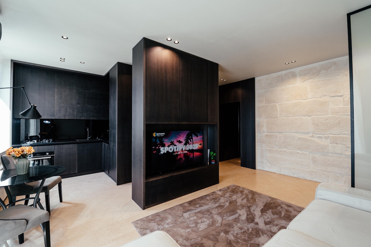 ¡Lujoso apartamento tipo estudio en el corazón del centro de la ciudad de Chisinau! Disfruta de impresionantes vistas del parque Dendrarium más grande desde esta residencia de primera clase. El apartamento cuenta con un dormitorio espacioso con baño integrado y enormes espejos. Hay un proyector disponible para las noches de cine y la sala de estar separada garantiza la comodidad. El acogedor dormitorio cuenta con un cómodo sofá y la cocina funcional incluye una nevera para vinos. ¡Wi-Fi gratuito y estacionamiento completan esta estancia perfecta!