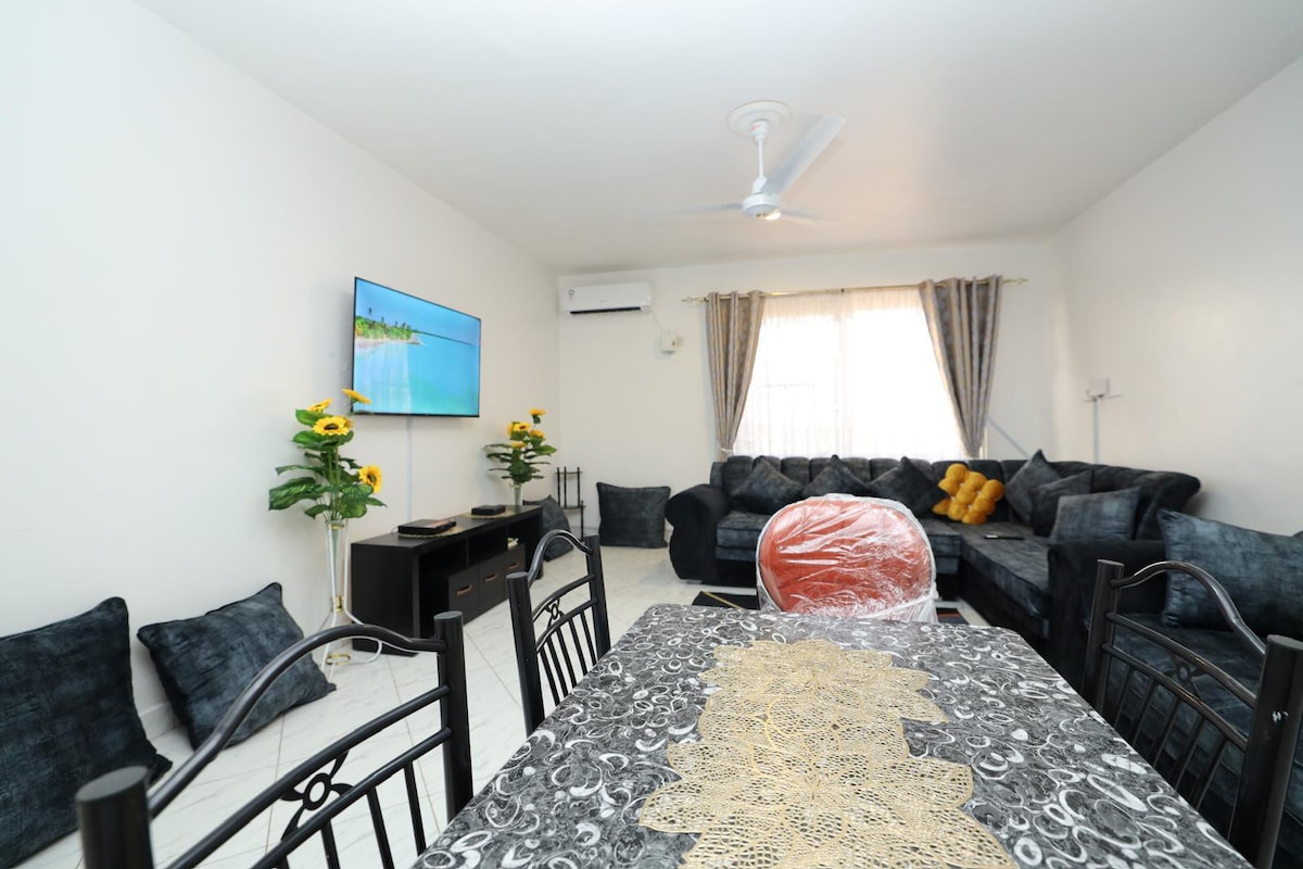 bienvenido a nuestra serena escapada en Mombasa Nyali. Esperamos poder hospedarte. Este apartamento está estratégicamente situado en la carretera Links frente a sos Nyali, cerca del famoso hotel Reef Masaai Nyali y también cerca del centro comercial Nivas y el centro de la ciudad de Nyali. El apartamento cuenta con cocina independiente,aire acondicionado, balcón, estacionamiento designado, piscina, wifi gratuito,ascensor y está cerca de la playa.