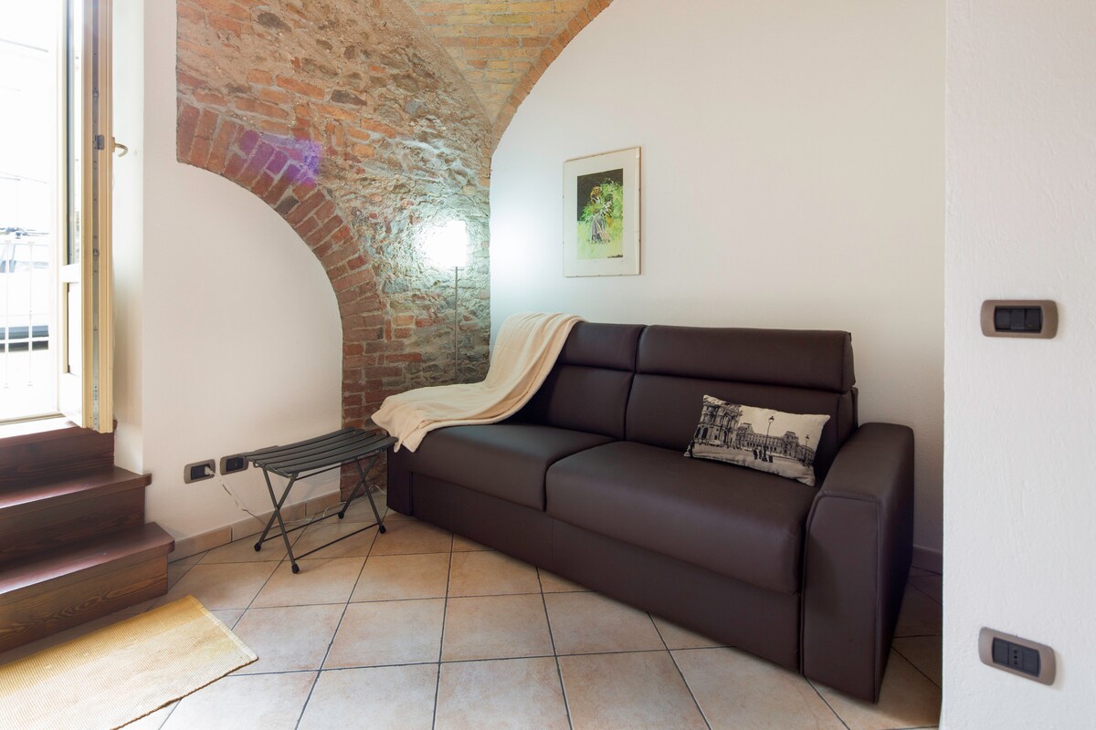 Con una vista impresionante de las Langhe, la suite Piazza d'Assi es un apartamento de diseño único en el último piso del Palazzo d'Assi, un edificio medieval en el centro histórico de Monforte d'Alba. Para parejas, familias o amigos, Piazza d'Assi es un espacioso apartamento con una cocina-sala de estar, un dormitorio doble romántico, un dormitorio doble más una cama individual y un baño con un diseño rústico y refinado. Terraza cubierta. A poca distancia a pie de restaurantes, bares y actividades de ocio.