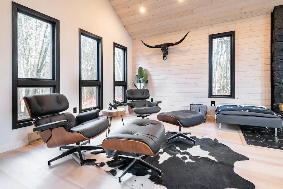 Esta casa moderna recientemente renovada ofrece un refugio rejuvenecedor de todo el estrés de la ciudad. Disfruta del entorno natural en un terreno privado de un acre mientras estás en un espacio que ofrece todas las comodidades para que tus vacaciones sean libres de preocupaciones. La gran sala de estar de concepto abierto cuenta con luz solar mientras disfrutas de las vistas del bosque. Nuestro loft de concepto abierto ofrece un ambiente relajante para jugar con familiares y amigos.