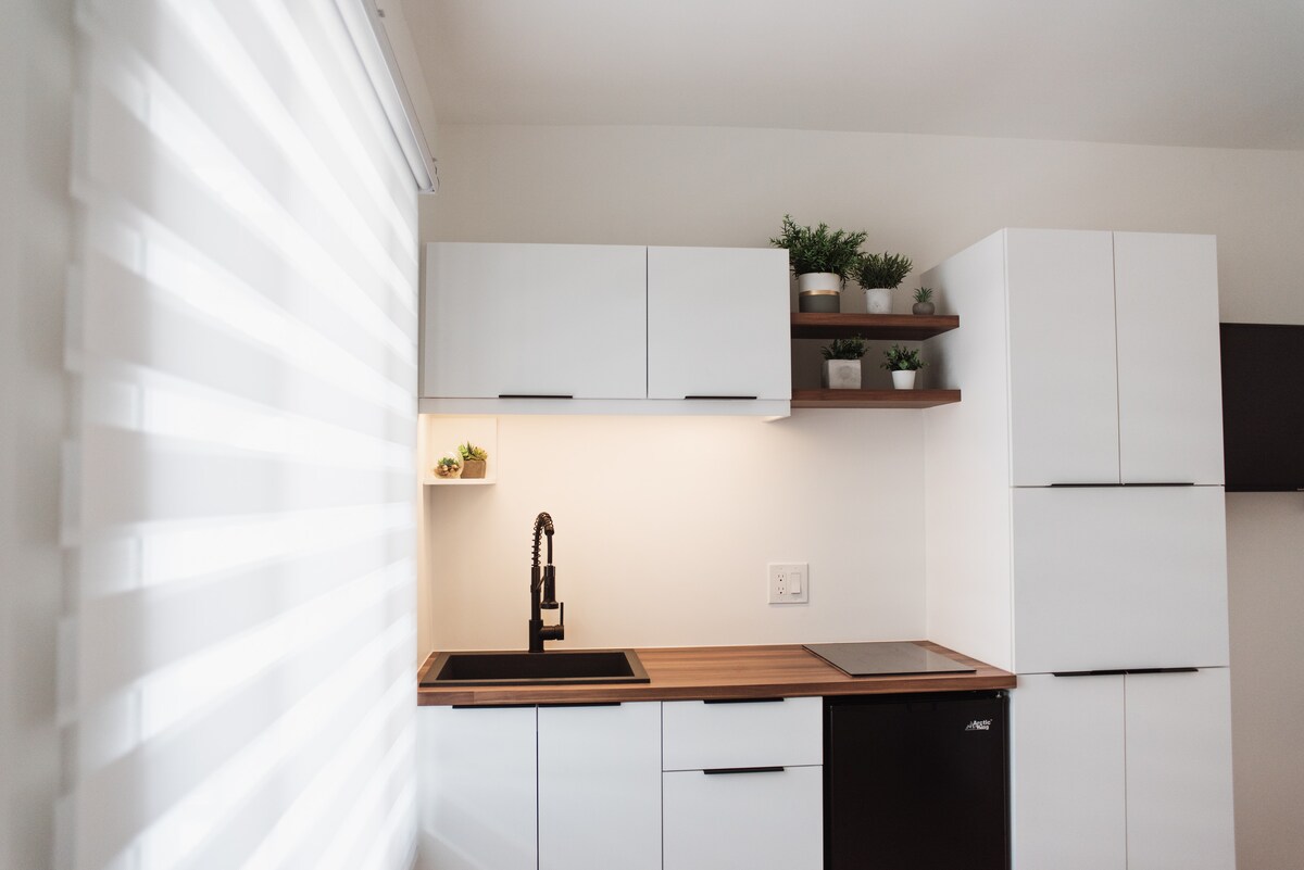 Alójese en este loft moderno-vintage en pleno centro de la ciudad. Cama tamaño queen, acogedora sala de estar, cocina equipada y baño nuevo. Ideal para una estadía de trabajo o de relajación, combina comodidad, estilo y practicidad, a pocos pasos de los cafés, restaurantes y comercios. Su refugio urbano perfecto para disfrutar plenamente de la ciudad.