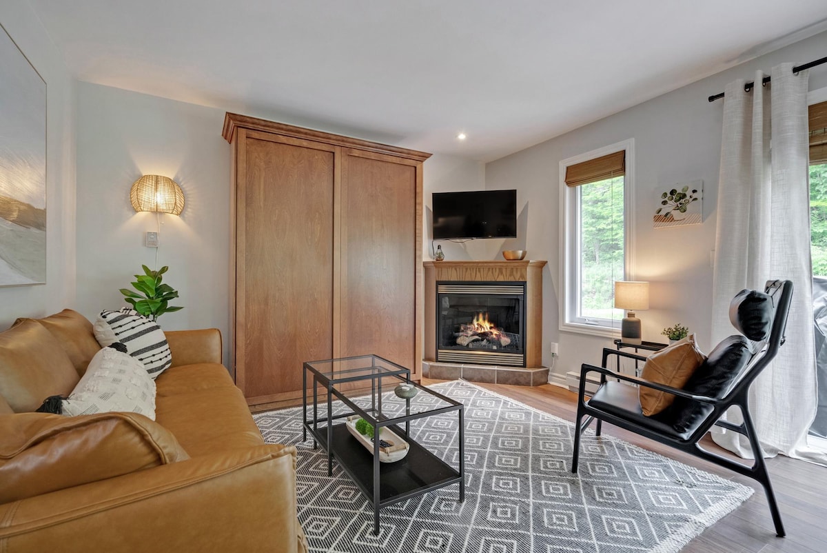¡Escápate a Mont Ste-Marie! A pocos pasos del telesilla, disfruta de hermosas caminatas, ciclismo de montaña y esquí. Después de un día de aventura, relájate con internet de alta velocidad, aire acondicionado y una chimenea de gas interior para mantenerte caliente en invierno. Relájate en el balcón con una barbacoa y una mesa de fuego de gas, todo mientras disfrutas de impresionantes vistas a la montaña. Perfecto para una escapada rápida o una estancia más larga, este acogedor apartamento ofrece el lugar ideal para la relajación. ¡Reserva ahora para vivir una experiencia inolvidable! CITQ 312571