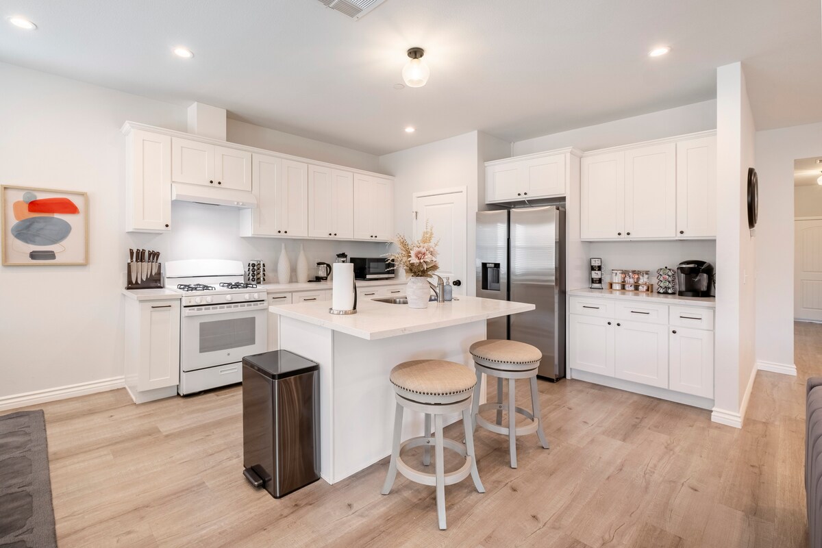 Esta casa de 225 metros cuadrados cuenta con 4 dormitorios, 3,5 baños y una cocina completa, ideal para familias, estancias largas, viajes de trabajo y vacaciones. Situado en un barrio tranquilo y seguro, el alojamiento ofrece estacionamiento gratuito en la entrada, un garaje para dos autos y espacio para varios vehículos grandes. Cerca de Claremont Colleges, el aeropuerto de Ontario, centros comerciales, Disneyland y San Diego. Perfecto para huéspedes que buscan un diseño espacioso, comodidades modernas y un acceso conveniente a los principales destinos del sur de California.