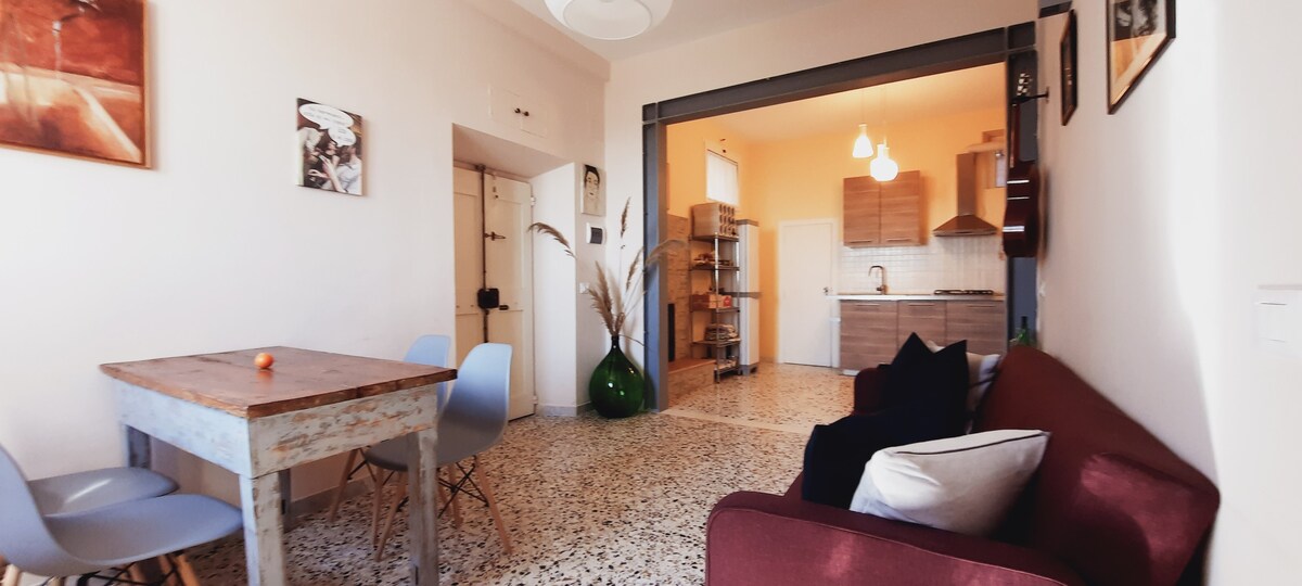 «Terrazza Numana» se encuentra a 50 metros del mar, al que se puede llegar cómodamente a pie a través de un paso peatonal. La amplia terraza con vistas al mar y al puerto deportivo te regalará amaneceres inolvidables, podrás relajarte admirando el panorama, almorzar y cenar al aire libre o disfrutar de una ducha bajo el cielo estrellado. El paseo marítimo te ofrecerá delicias para el paladar, mientras que la sugerente escalinata «Costarella» te acompañará al corazón de Numana, reina del Conero.