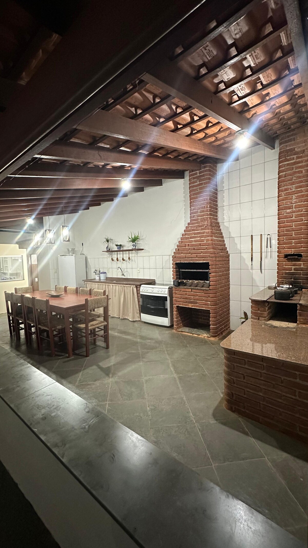 Deliciosa casa de una planta con sala de estar/cocina, dormitorio, dos baños, balcones con dos hamacas disponibles y un gran patio trasero donde se puede hacer una barbacoa, disfrutar de nuestra ducha, respirar aire fresco, estacionar fácilmente tres vehículos y disfrutar de una hermosa vista a las montañas. Casa ubicada en zona urbana. Estamos a 4 minutos del parque acuático Thermas Hot World, a 6 minutos del centro de Águas de Lindóia y a 4 minutos de Monte Sião. Ver más detalles y más información en las descripciones de las fotos...