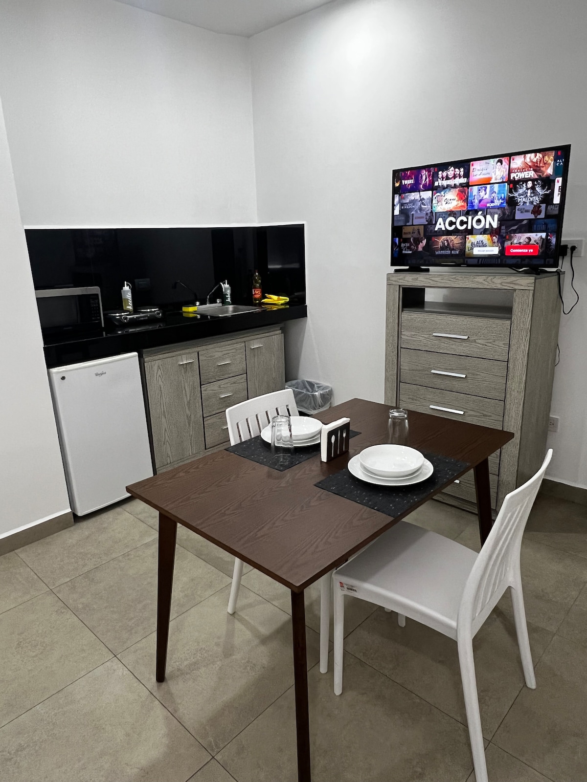 Cálido y tranquilo espacio wifi A/C TV/cocineta