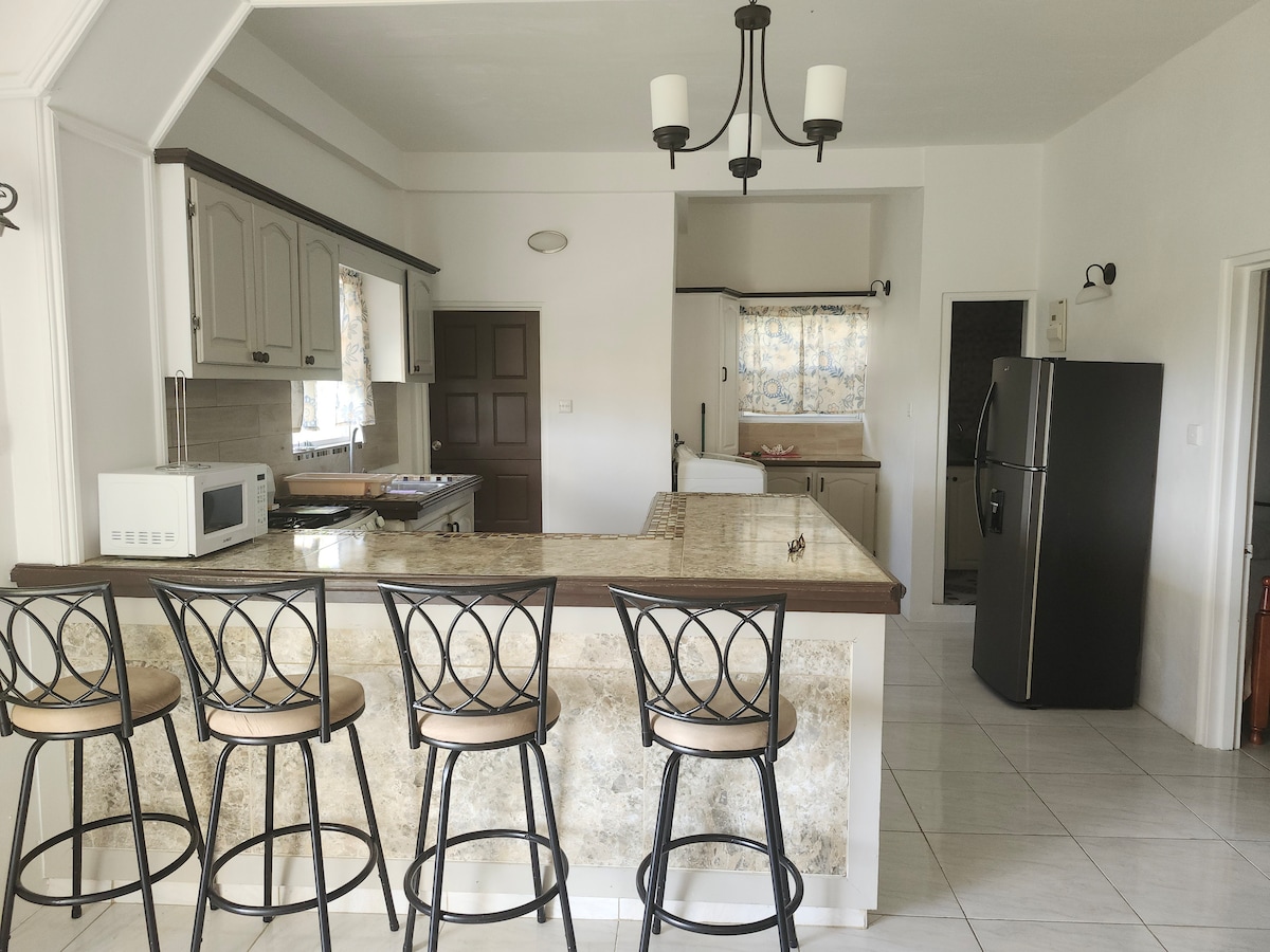 ¡Te damos la bienvenida a tu espacioso refugio de dos dormitorios, '🌹Orchid! 🌹A solo 5 minutos del estadio deportivo, a 7 minutos de la histórica ciudad de St. George 's y a solo 3 minutos del transporte público, este acogedor alojamiento cuenta con Wi-Fi confiable, aire acondicionado, una zona de estar privada al aire libre y una lavandería independiente con lavadora y secadora. Disfruta de la tranquilidad con un check-out autónomo fácil. Además, conoce a nuestras dos amigables tortugas Morrocoy para un toque divertido y memorable durante tu cómoda escapada a la isla.