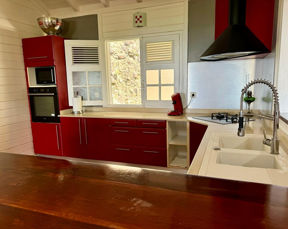 Alquileres en Turtle Bay Grande Anse - Martinica Mini Villa T1 en altura que ofrece una vista panorámica del mar y el campo. Acceso al mar a 50 m a pie. Playa conocida por sus numerosas tortugas verdes visibles con esnórquel durante todo el año. Consta de un dormitorio con aire acondicionado y mosquitero, un baño con ducha e inodoro, una cocina equipada en la terraza cubierta y una piscina privada de 2 m*3 m en la terraza descubierta. Restaurante TiSable a 50 metros y pequeños comercios a 500 metros.