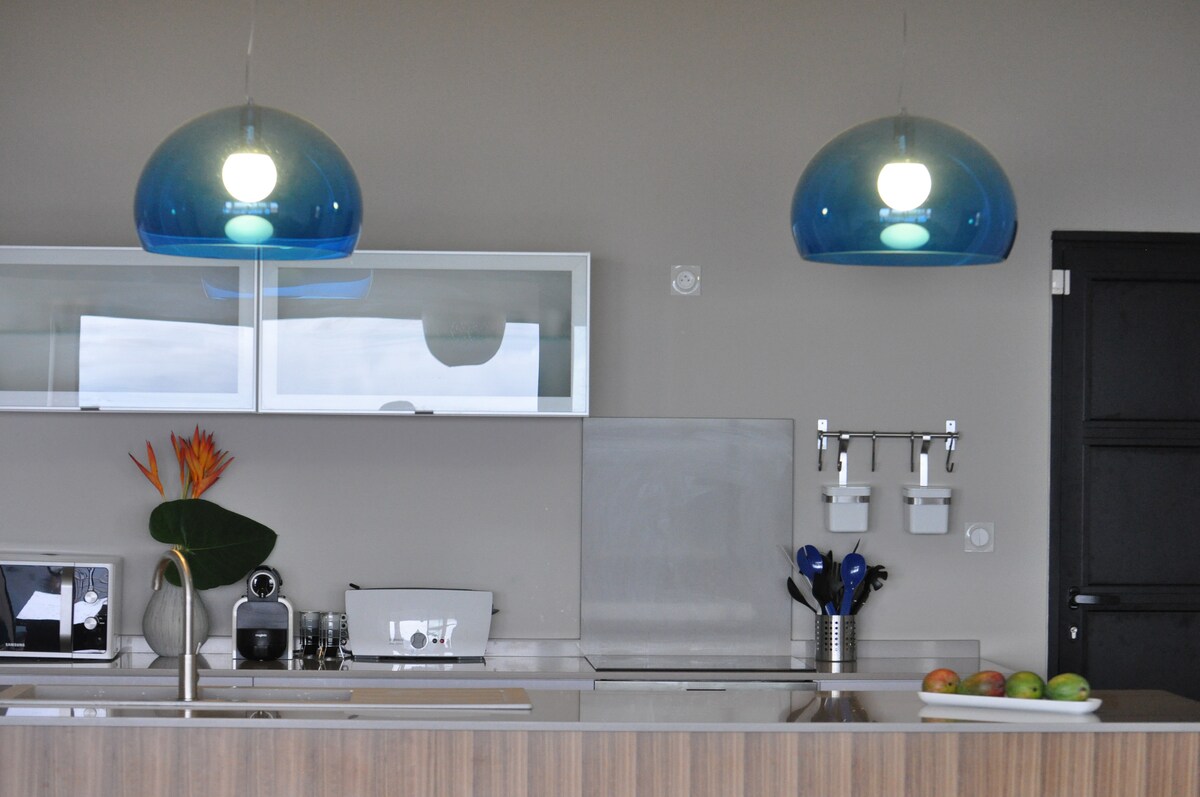 Desde el amanecer hasta el atardecer, Diamond Bay es tu telón de fondo. Este nuevo y elegante dúplex ofrece una vista espectacular de Diamond Rock y Morne Larcher. Dos suites con aire acondicionado (camas tamaño queen) con terrazas panorámicas, una cocina de diseño, una luminosa sala de estar y en el exterior… una piscina infinita frente al mar. La playa se encuentra a pocos pasos y las tiendas están cerca, para una estancia rara en Martinica que combina la comodidad absoluta con un entorno excepcional.