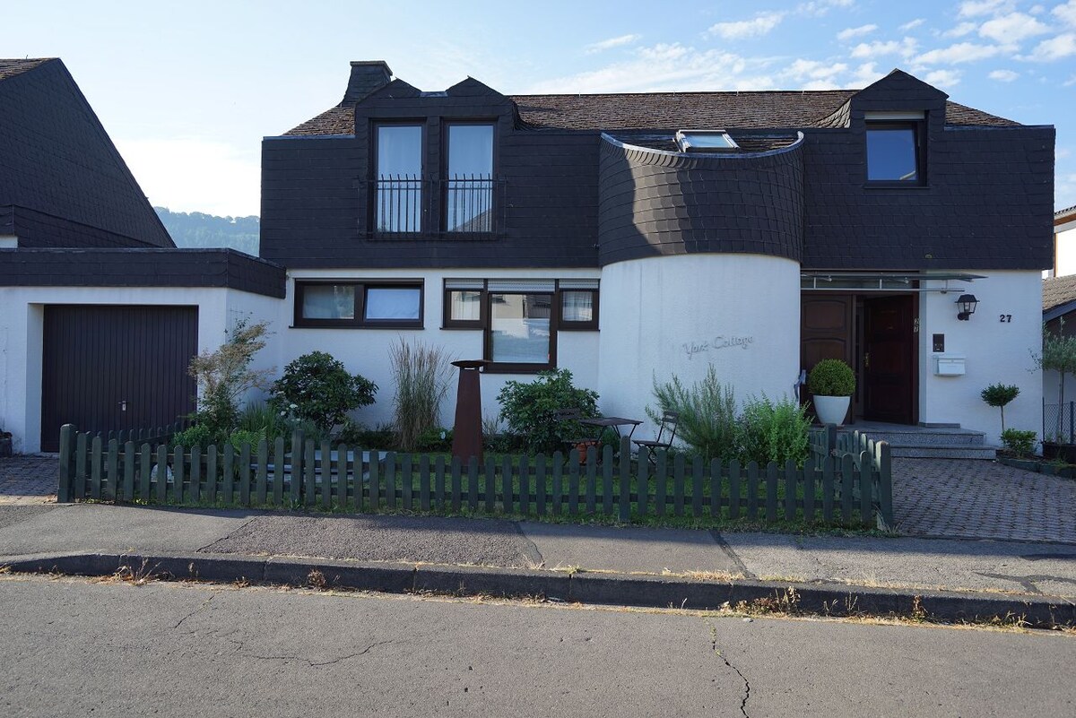 Departamento cerrado en el primer piso de nuestra casa. Smart TV (Sky, DAZN), sala de estar, TV en las habitaciones, cocina totalmente equipada con lavavajillas, sofá se puede usar como sofá cama para una persona, balcón cubierto con vistas a la altura del Mosel, bicicleta, garaje para motocicletas, camas para niños pequeños y sillas altas bajo petición, parque infantil, carril para bicicletas directamente desde casa, estacionamiento, supermercados a 800 m, camino a la ciudad sin subidas, ¡los niños son bienvenidos! Tarifa del huésped/tarjeta de huésped en el precio incl.
