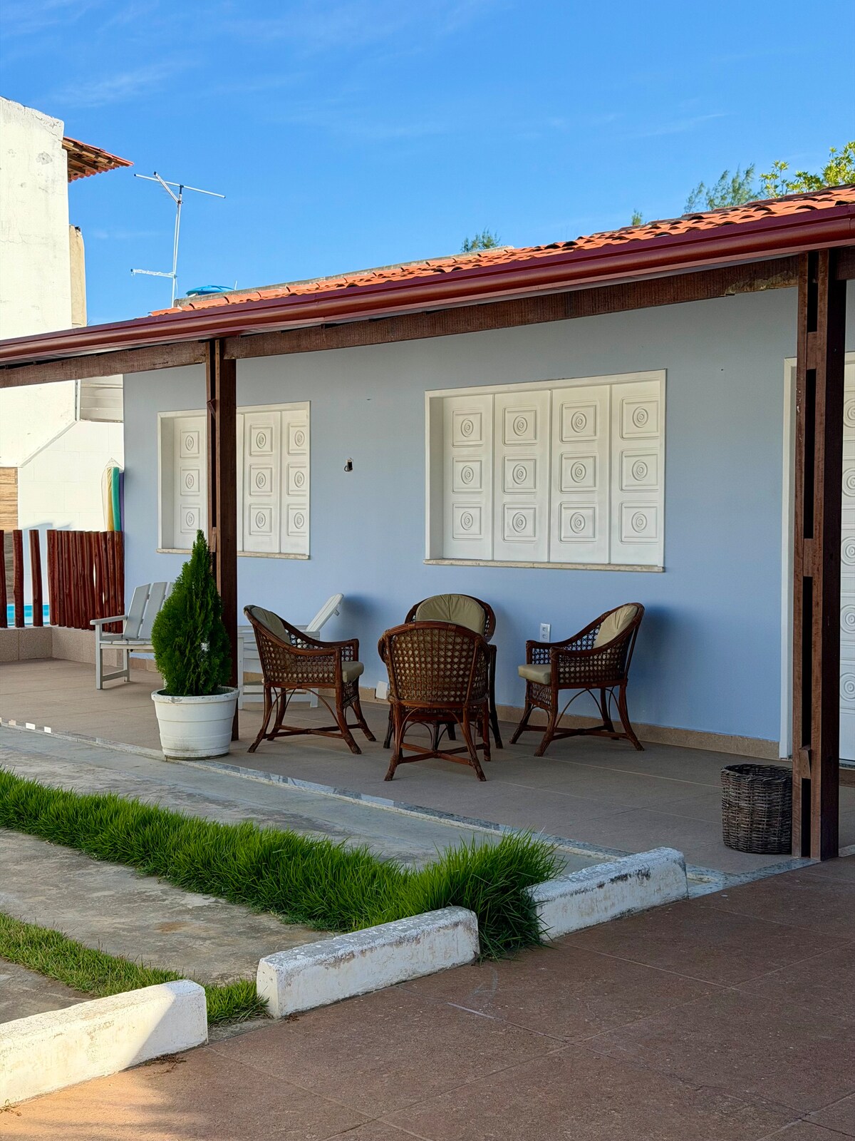 Bienvenido. Relájate con toda la familia en este alojamiento tranquilo. Todas las habitaciones y la cocina tienen aire acondicionado. Capilla para tus oraciones. Smart TV, wifi, Netflix, Amazon. Piscina con hidromasaje, ducha. Proporcionamos ropa de cama y toallas. Cerca eléctrica, cámaras de seguridad, garaje, portón y calle (zona exterior) A 3,5 km del aeropuerto, a 4,5 km de la playa de Aruana, a 8 minutos de Orla de Atalaias. Para brindarle mayor comodidad y conveniencia, contamos con un enfriador térmico.