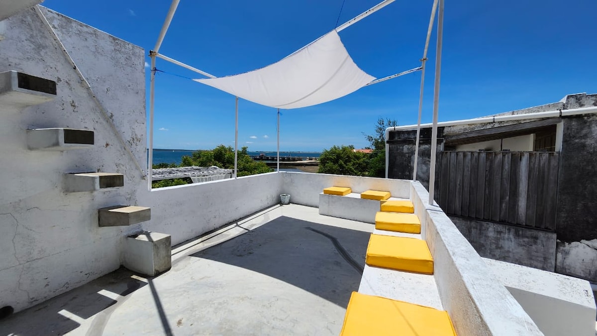 Una casa tranquila y cómoda para familias con niños o grupos pequeños de amigos que buscan pasar un buen rato, relajarse en la isla y disfrutar de impresionantes vistas al océano Índico. Tu familia estará cerca de todo cuando te hospedes en este lugar céntrico. Nuestra azotea será un gran lugar para ver la puesta de sol y beber buenas bebidas naturales. Tenemos una red de negocios locales para recomendar para atender comidas locales, hacer viajes en barco explorando las playas vírgenes de los alrededores.