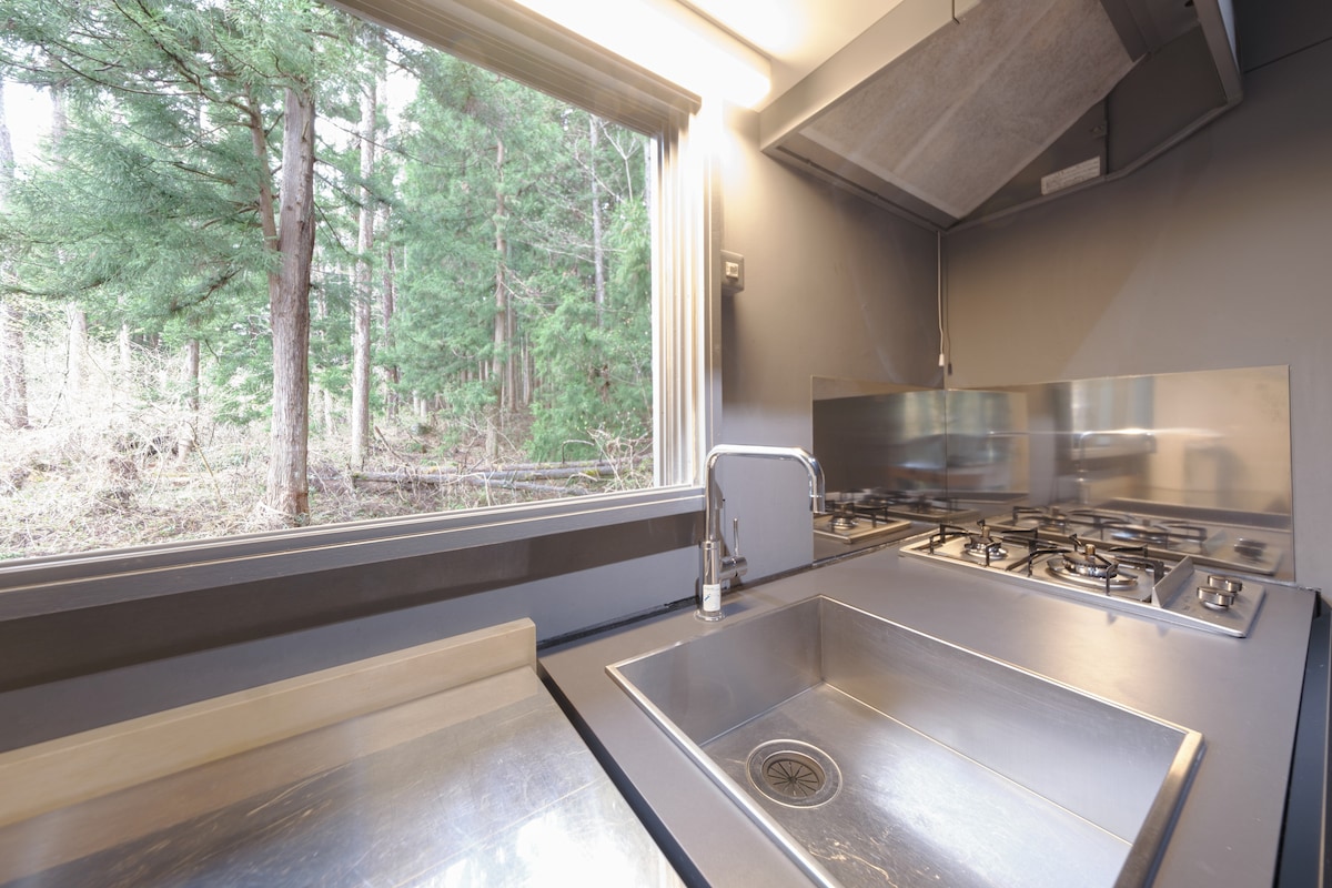 Tu propio escondite para adultos ubicado en el bosque.Desde el intercambio inteligente Nasu Kogen, está a 12 minutos en la carretera general con poco tráfico y tráfico. También está a 15 minutos en auto de los principales destinos turísticos de Nasu. Dado que la elevación es más alta que el centro, la temperatura es unos 10 grados más fría que en el centro de la ciudad.Puedes mantenerte fresco en verano sin aire acondicionado. Un momento divertido para pasar tiempo con tu familia y tus amigos con el sol en la espaciosa terraza. Hay un espacio de barbacoa extra grande afuera.Hay persianas en la mesa y sombrillas en el sofá, para que puedas pasar un rato relajante en el bosque. La espaciosa sala de estar y comedor está totalmente equipada con un teatro 4K de 120 pulgadas, para que puedas disfrutarlo en el interior en días lluviosos. En el exterior, hay una gran fogata de 75 cm que se puede utilizar con un horno táctil.Relájate y disfruta de un espacio especial donde podrás disfrutar de lo extraordinario mientras descansas tu corazón de la fluctuación del fuego.Un mundo de vegetación dondequiera que mires los árboles naturales utilizados para las paredes y los suelos.Relájate en la belleza de la vegetación. Estacionamiento para 4 autos, se pueden consultar 5 autos.