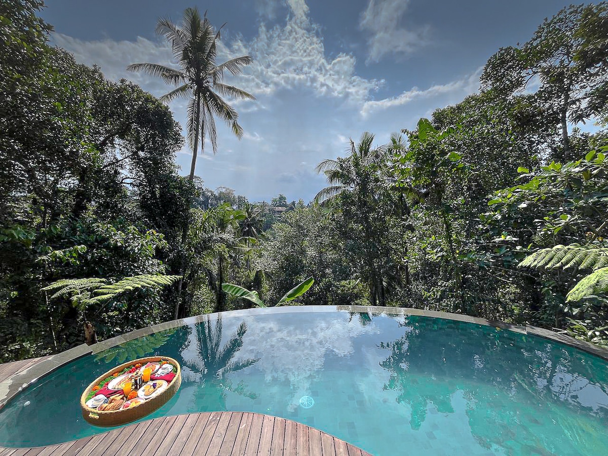 Villa Shamballa es un refugio espiritual y tranquilo que ofrece una experiencia de villa privada íntima e indulgente. Este romántico escondite mágicamente encaramado sobre un barranco a lo largo del místico río Wos es el lugar ideal para una pareja, especialmente para su luna de miel, aniversario y cumpleaños. Oferta especial solo para luna de miel y cumpleaños (el mismo mes de tu estadía) - Reserva antes del 15 de octubre de 2025. Cena romántica de cortesía de 3 platos junto a la piscina a la luz de las velas - solo para estancias de 3 noches como mínimo.