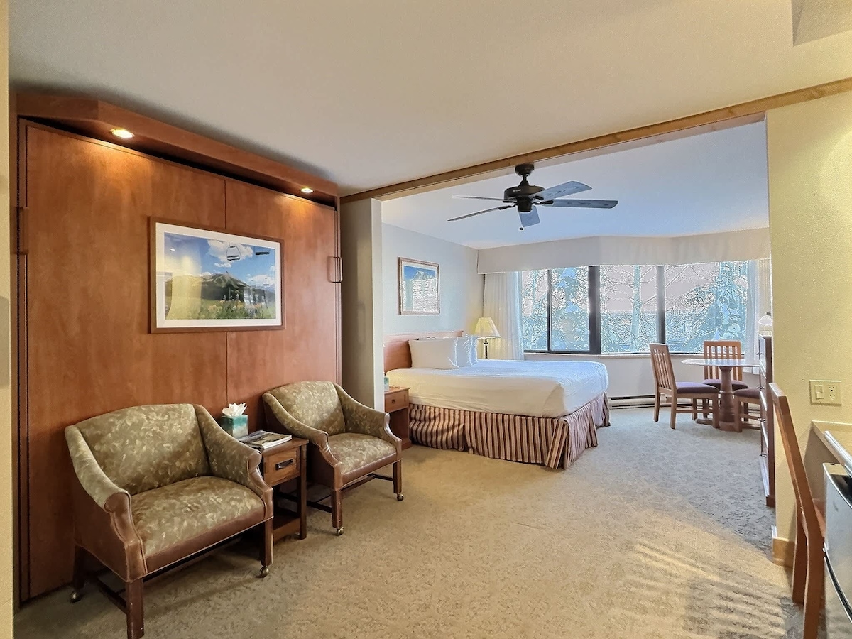 El Grand Lodge es donde la asequibilidad se combina con la comodidad. Este hotel económico y sin lujos es perfecto para aquellos que quieran disfrutar de todo lo que Crested Butte tiene para ofrecer por menos. Situado a pocos pasos de remontes, bares, restaurantes y del servicio de transporte gratuito al centro de la ciudad; la ubicación no puede ser mejor. Este espacioso estudio incluye una cama tamaño king, una cama plegable tamaño king y una pequeña cocina. Los servicios del edificio incluyen jacuzzi, piscina climatizada, spa, gimnasio, sauna y carga de vehículos eléctricos. Número de licencia comercial: 304504