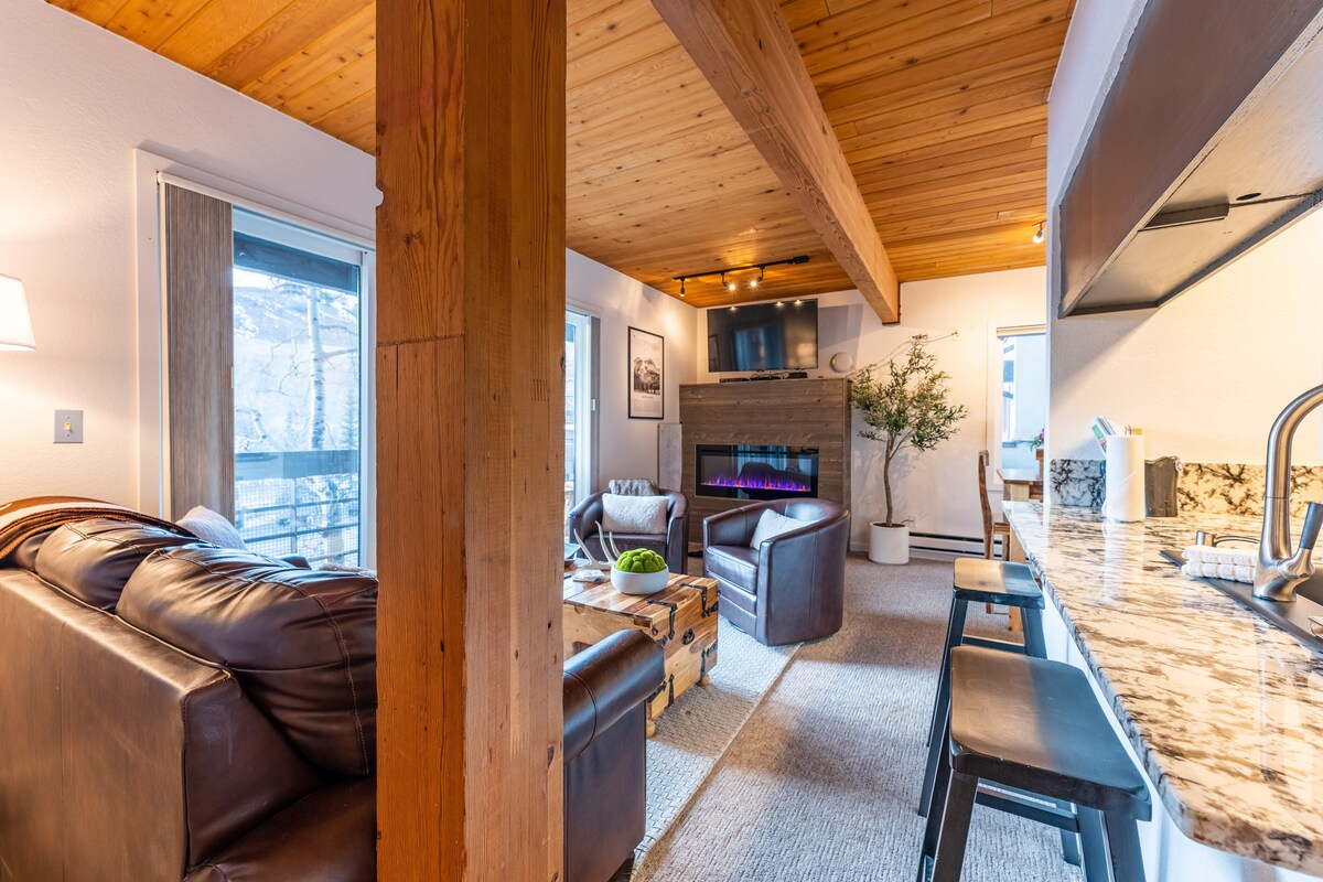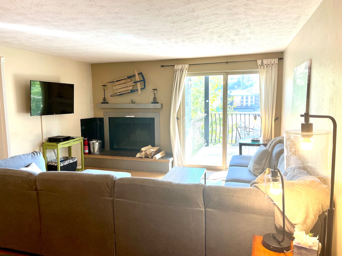 Camina hasta los ascensores (está a diez minutos a pie) o toma el servicio de traslado de dos minutos desde este condominio actualizado de 2 dormitorios y 2 baños. El apartamento tiene piscina, bañera de hidromasaje y sauna, wifi, chimenea y excelentes vistas desde la terraza. ¡Hay una parada de autobús gratuito a los remontes y a la ciudad justo enfrente del edificio! Fácil acceso a ciclismo/esquí/senderos. POR FAVOR, TEN EN CUENTA QUE: La piscina, el jacuzzi y la sauna estarán cerrados del 4 de abril al 15 de junio, así como desde el Día del Trabajo hasta el Día de Acción de Gracias. Si tienes alguna duda, no dudes en consultarnos ANTES de reservar.