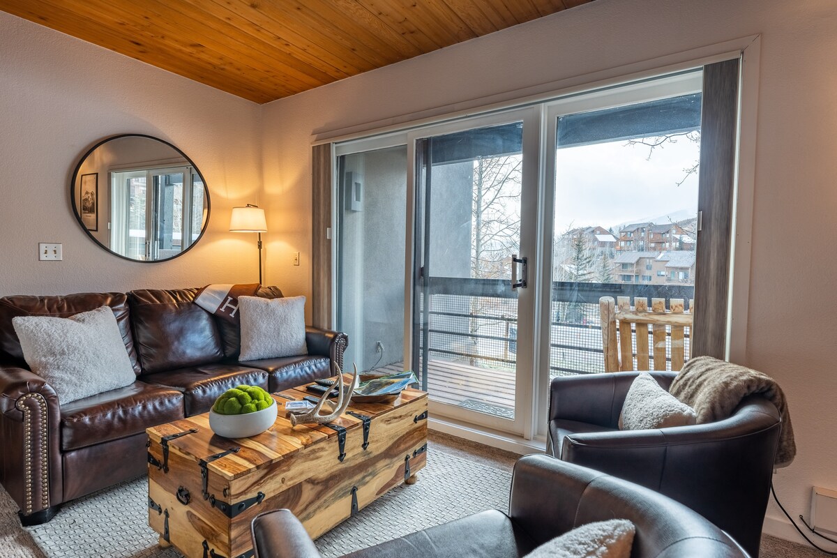 Venga a disfrutar de uno de los condominios más alquilados de todo Crested Butte: - Impresionantes vistas del monte Emmons y Scarp Ridge desde la cubierta, con su propia configuración de comedor - Baño nuevo (noviembre de 2021) - Mejor ubicación - entrada/salida de esquí, acceso a senderos de montaña para todas las estaciones - Cocina totalmente equipada para cocinar y hospedar grupos grandes - Tapas de colchón premium para un sueño cómodo - Jacuzzi (solo temporada de esquí) - Mascotas bienvenidas (máximo 2 perros, $ 20/perro/noche) - Acceso gratuito al servicio de traslado (¡disfruta de la cena y las bebidas en la ciudad!)