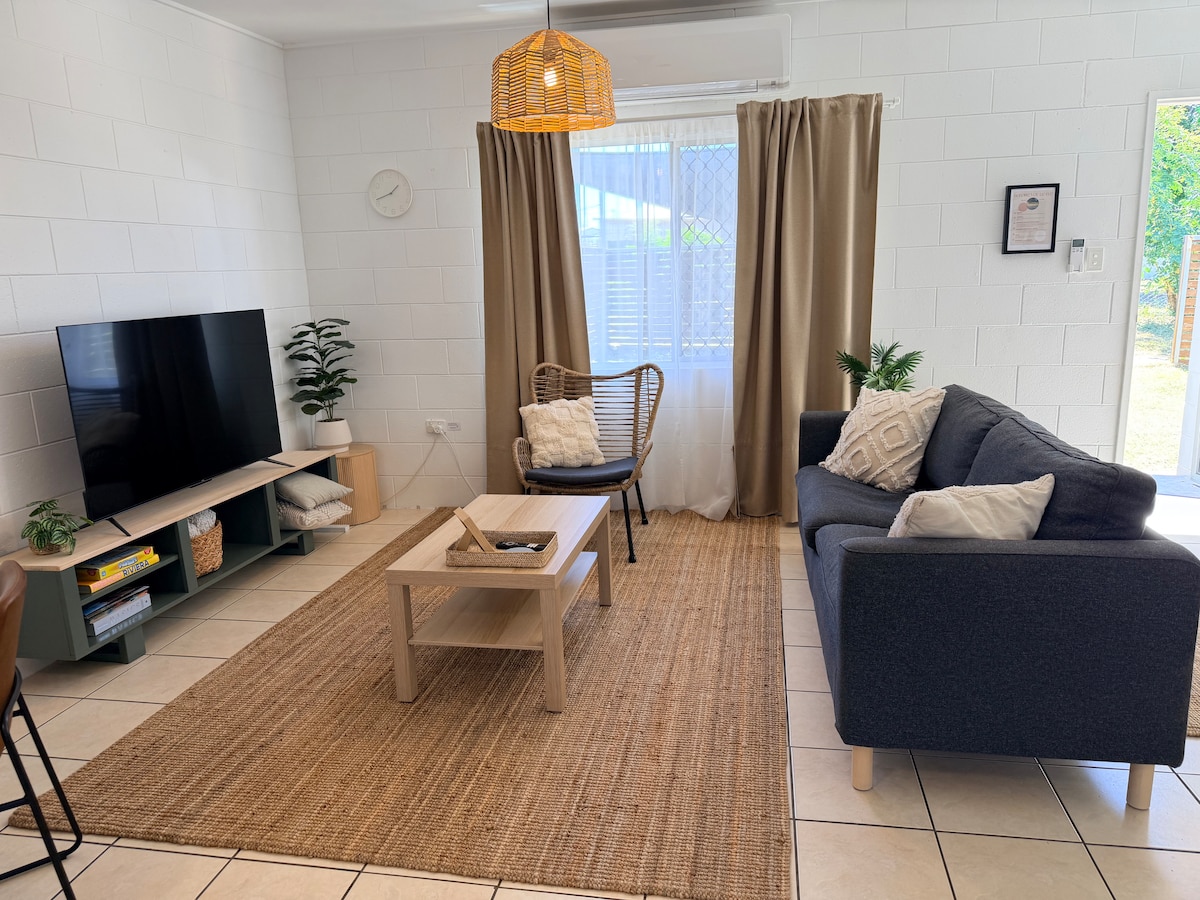Este elegante alojamiento es perfecto para viajes en grupo. Esta casa de 3 dormitorios está completamente renovada en todas partes y puede alojar hasta seis huéspedes. Con una cocina totalmente equipada con cafetería completa, elegante baño, dormitorios con aire acondicionado dividido y armarios, salón y comedor combinados con TV inteligente de 65pulgadas, lavandería interna, totalmente vallada, zona exterior de barbacoa, internet, ropa de cama lavada profesionalmente. Esta casa familiar te está esperando.