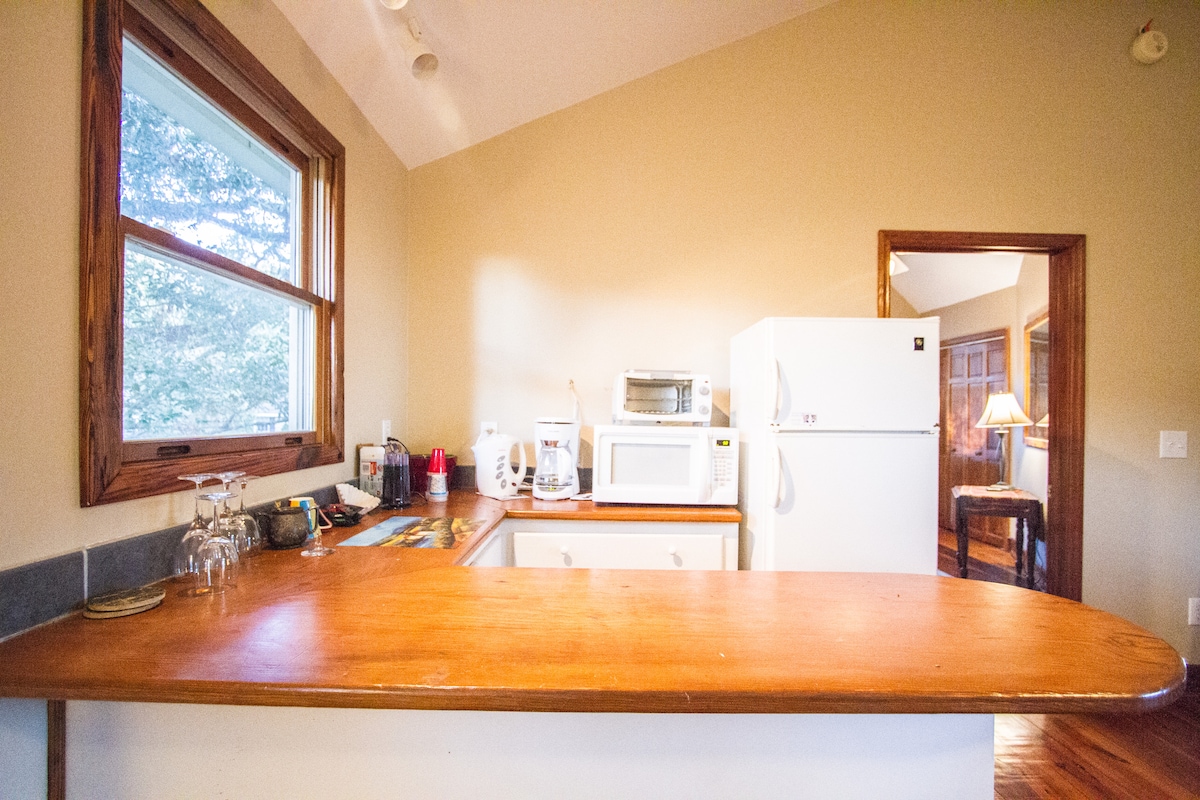 Entrada privada y entrada a un estudio privado con una cama tamaño queen, baño completo y cocina en una de las mejores ubicaciones del área de Charleston. Tiene su propio patio al aire libre. ¡A 6 millas del centro de la ciudad, a 3 millas de la playa! ¡Ubicado junto a Coleman Blvd en el camino a Sullivan 's Island en Old Mount Pleasant! Está a menos de 1/4 de milla de Shem Creek, donde puedes alquilar kayaks y tablas de paddle. ¡Camina o anda en bicicleta(se proporcionan 2) a restaurantes, tiendas y mucho más! Permiso STR de Mt. Pleasant n.º ST260259 y licencia comercial SC n.º 20127489