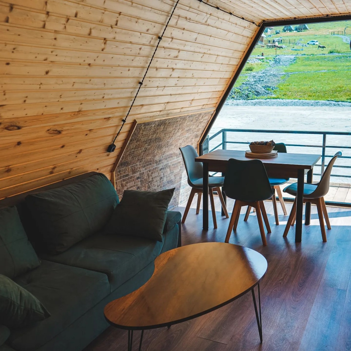Descripción Gabua Wooden Glamping se encuentra en el pueblo de Gergeti, municipio de Kazbegi. Nuestro glamping tiene dormitorio, baño privado, cocina, terraza con muebles de exterior, piscina al aire libre, wifi gratuito y mucho más en las montañas de cuento de hadas. El centro de Stepantsminda está a 1,6 km de nuestro alojamiento. Desde nuestro glamping hay una ruta de senderismo hasta la iglesia de la Trinidad de Sameba. Hay dos aeropuertos cercanos, el primero es el aeropuerto internacional de Tiflis y el segundo es el aeropuerto internacional de Vladikavkaz.