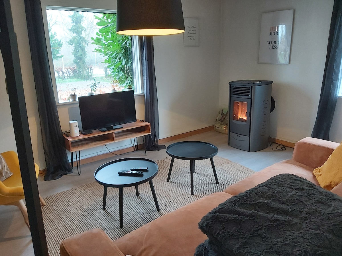 Tu propia casa de campo en nuestra tranquila granja. A solo 4 km en bicicleta del centro de Kortrijk, 30' van Gent, 40' van Lille, 45' de Brujas o 30' de Ypres. ¡Perfecto para descubrir la región! En tu casa de campo tienes todo para las vacaciones perfectas: dormitorio, baño separado, baño separado, cocina, cocina, comedor y salón con televisión y estufa de paleta. El estacionamiento está detrás de una puerta cerrada, el automóvil y/o las bicicletas están completamente seguros.