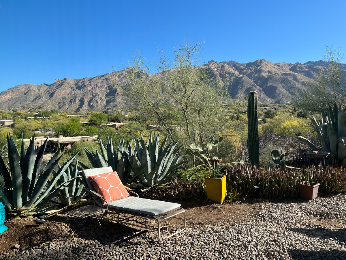 ¡El escondite perfecto en el desierto en una comunidad tranquila, pintoresca y segura! Esta suite de invitados es sencilla, limpia y luminosa, con acceso privado y vistas a las montañas y a la ciudad. Senderismo espectacular a menos de 3 millas de distancia, a 20 minutos en coche del centro de la ciudad y a menos de 5 minutos de gimnasios, restaurantes, tiendas de comestibles, farmacia, gasolinera, etc. A los anfitriones les encantaría ayudarte a sentirte como en casa y tener la mejor estancia posible. ¡Son nativos de Tucson con muchas recomendaciones y consejos de expertos!
