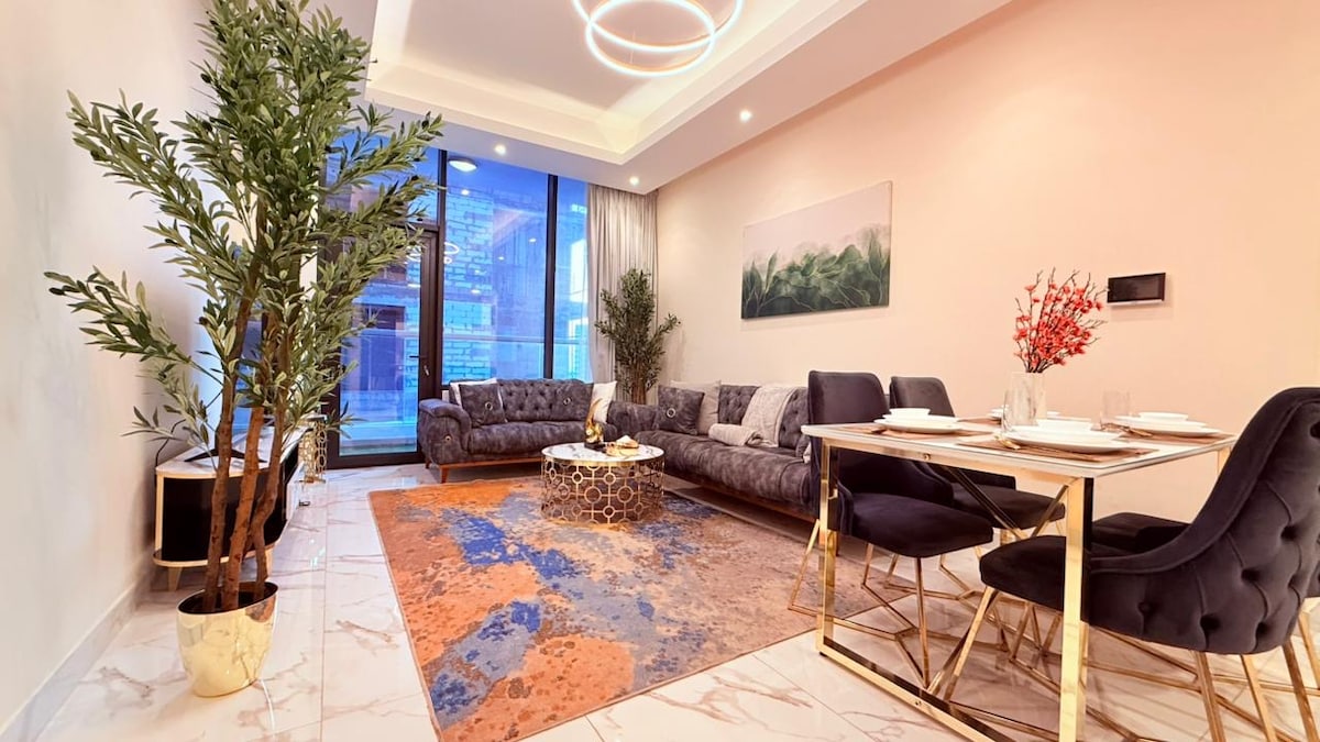 Kick back and relax in this cozy, stylish condo. The Condo 327 is a brand new sea + city view 1BR well-equipped apartment, with two private balconies w/outdoor swing, PS5, two smart TV’s (with Netflix), comfy feathered bedding, high-speed wifi, toiletries and fully-fitted kitchen on the 32nd floor of a gorgeous newly-built and secure building. Full access to all amenities; - Fitness center - Swimming pool - Sauna - Cinema - Squash court - 24/hr security.