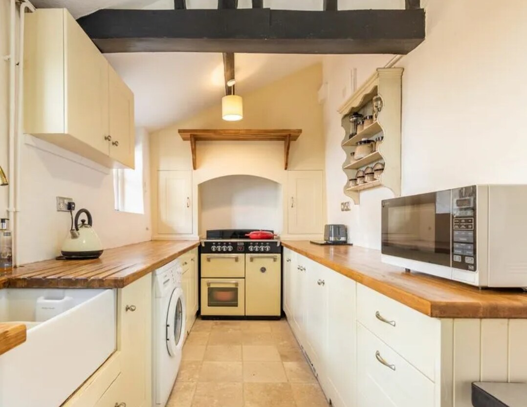 Durante más de cien años, esta antigua lechería con carácter fue donde se ordeñaban las vacas en Hawthorn Farm. Reformada con gusto y lujo en una casa de campo de dos dormitorios en 2017, es independiente y completamente separada. En el interior, las paredes originales, las vigas y los techos abovedados le dan una sensación espaciosa y aireada. Tiene su propia cocina americana totalmente equipada y un baño con una gran ducha, inodoro y lavabo. La espaciosa sala de estar alfombrada de 18 x 14 pies tiene dos enormes sofás cómodos y una mesa con sillas.