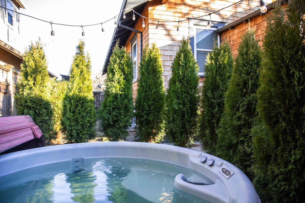 Explora los restaurantes, cafeterías y bares de clase mundial en los cercanos distritos de Williams y Mississippi. Da un paseo por el galardonado (y más antiguo) jardín de rosas de la Ciudad de las Rosas, al otro lado de la calle, en Peninsula Park. En casa, este estudio de segundo piso tiene espacio adicional en el loft de meditación, una cocina completa, internet rápido y un proyector para transmitir. Disfruta de tu terraza privada sobre el jardín compartido con hamaca y ducha exterior fría/caliente. Autobús y tren cerca con amplio estacionamiento en la calle.