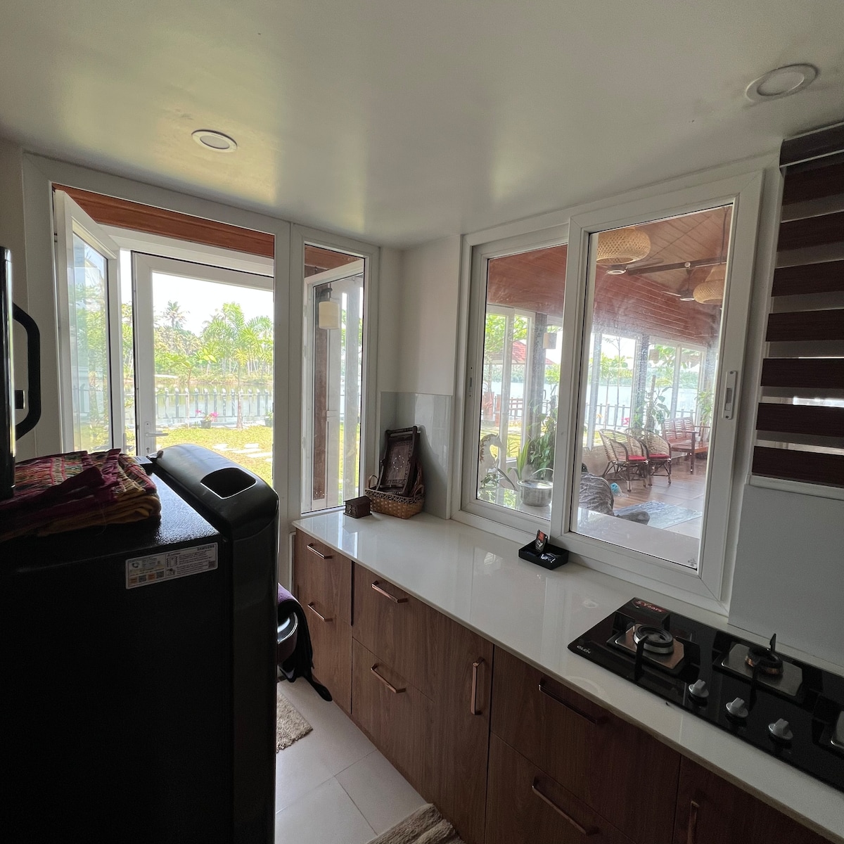 ¡Te damos la bienvenida a tu escapada perfecta junto al lago! Ubicado a solo unos pasos de la orilla del agua, este refugio acogedor y elegante ofrece vistas impresionantes, un entorno sereno y todas las comodidades de un hogar. Despiértate con los suaves sonidos de la naturaleza, bebe café en la terraza privada con vistas al lago y relájate con inolvidables puestas de sol cada noche. Lugares más cercanos Acantilado de Varkala - 13 km Playa Kappil - 10 km Kayak y otras actividades de aventura a 5 km.