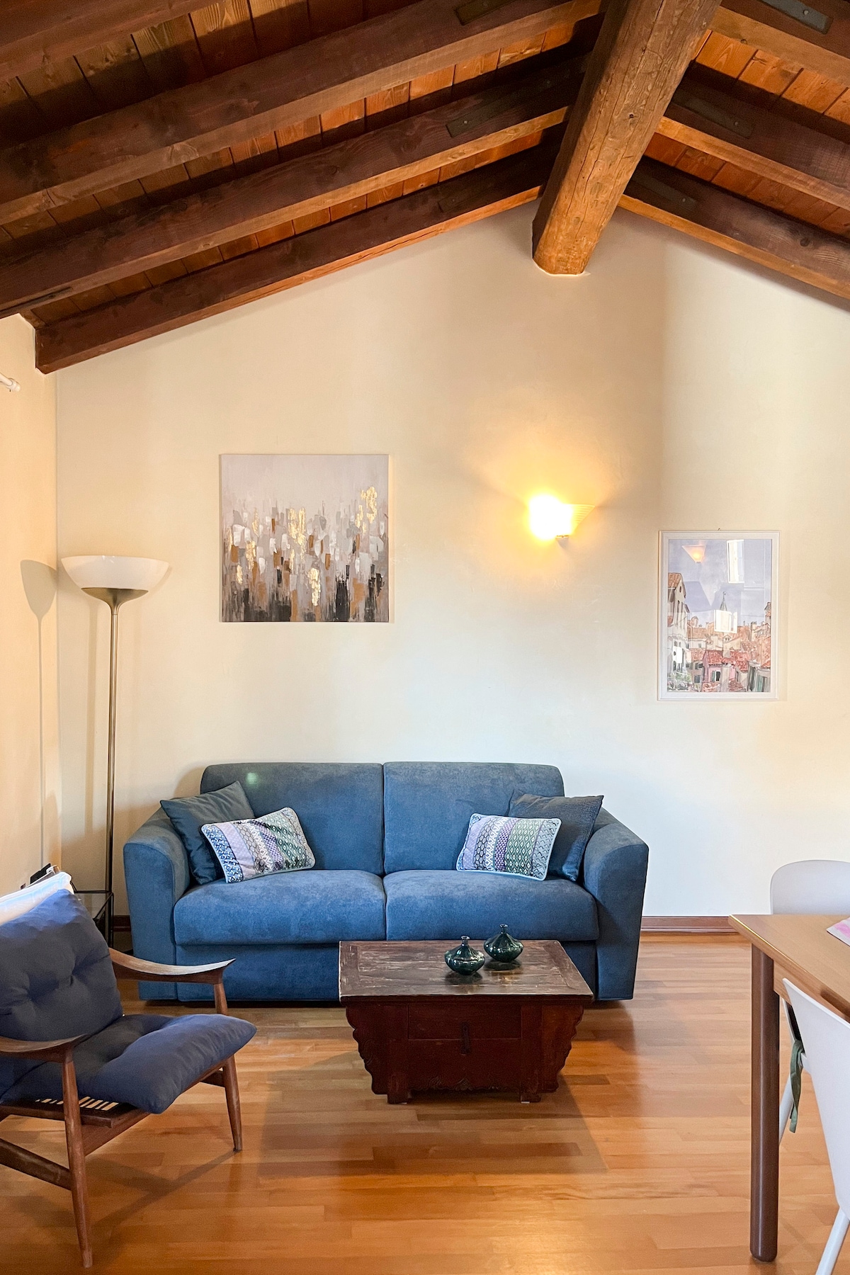 Acurrúcate con un libro, desayuna y cena mientras admiras la increíble vista de los campanarios y canales de Venecia, vive como un verdadero veneciano en el barrio más típico de Venecia a pocos pasos del puente de Rialto, Ca' D'oro y San Marco en un apartamento acabado con muebles y adornos hechos por artesanos venecianos y de Murano. Te sentirás como si estuvieras experimentando el fantástico ambiente de los años 1800, pero con todas las comodidades de un apartamento moderno. No te pierdas esta increíble experiencia.
