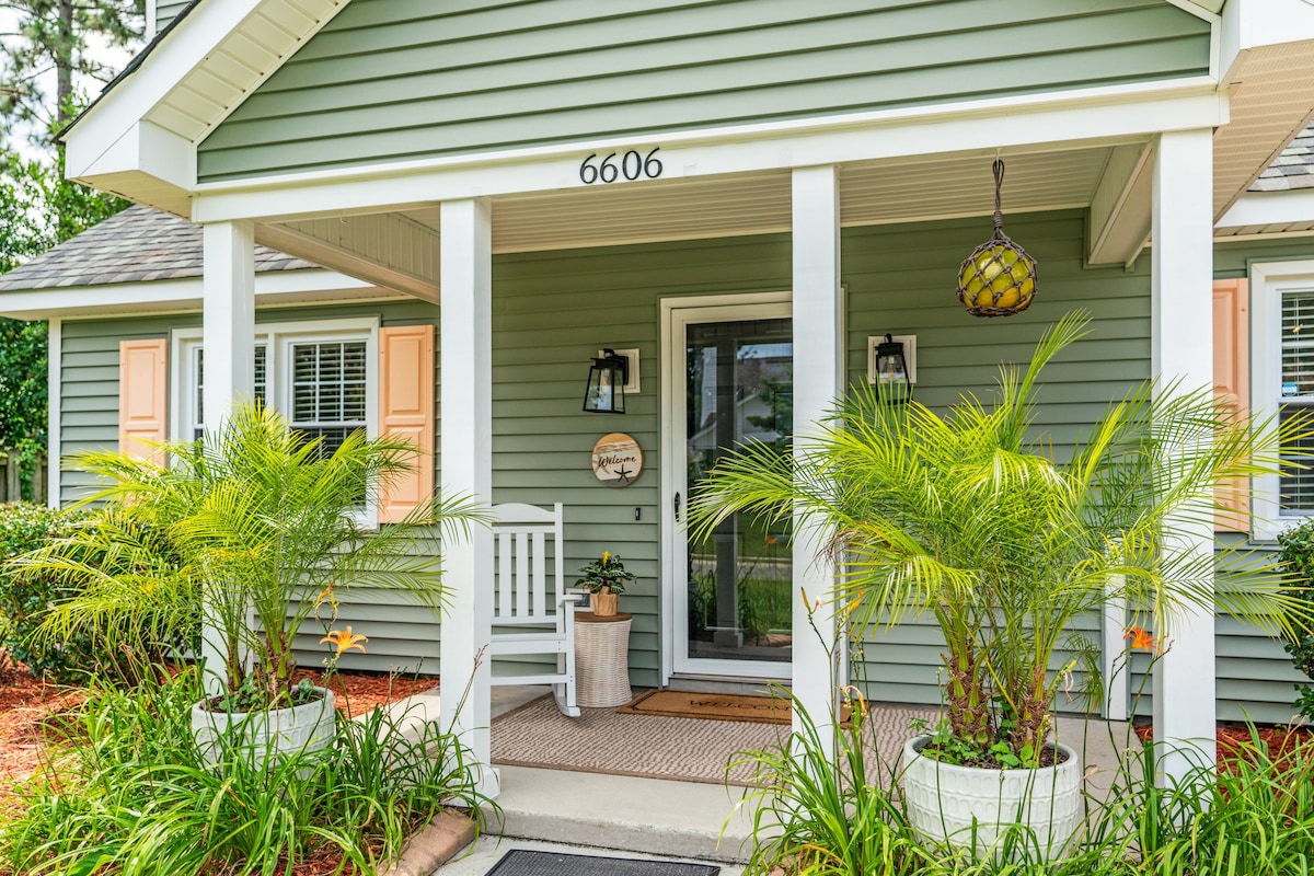 Exquisitamente diseñado 3 dormitorios + oficina / 2 baños completos. ¡Nueva construcción, ideal para familias! Sala de estar llena de luz con chimenea eléctrica, cocina y gran comedor. Suite privada con cama tamaño king y amplio baño con ducha de efecto lluvia. Al final del pasillo hay un segundo dormitorio con cama tamaño queen y un tercer dormitorio con dos camas individuales, que comparten un baño completo con bañera. Espacio de oficina, 2 porches cubiertos, lavandería, aparcamiento fuera de la calle, persianas opacas, cuna/silla alta y sofás cama. ¡A pocos pasos de restaurantes y tiendas y a 20 minutos en coche de la playa!