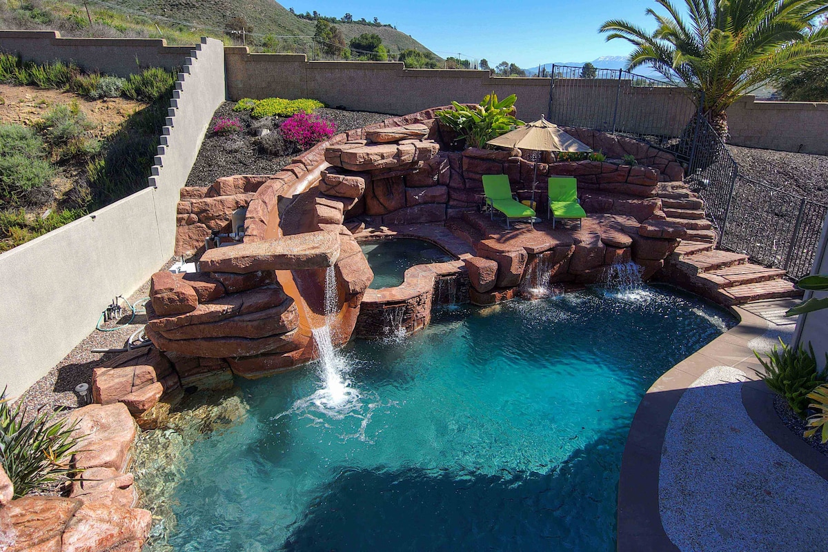 Escápate a la pintoresca región vinícola y disfruta de una vida de lujo en nuestra impresionante casa de vacaciones, a pocos minutos de las bodegas de Old-Town y Temecula. Características: Piscina de agua salada y spa - ¡pregunta sobre la calefacción de la piscina! Mesa de billar, tejo, mesa de póquer, ping pong, jenga gigante, corn-hole, Arcade… 4 TV Duchas con efecto de lluvia en todos los baños Bañera romana en el baño principal. Diseño espacioso para grupos grandes Sala de estar al aire libre, isla de barbacoa, fogata Espacio de trabajo Crea recuerdos inolvidables en este hermoso entorno