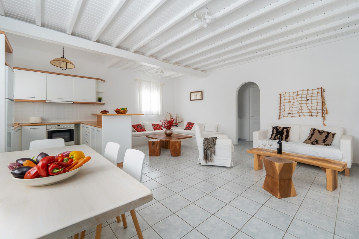¡Saludos de Chris y María! Me emociona darte la bienvenida en nuestras casas de estilo micónico. Ofrecemos a nuestros huéspedes una estancia cómoda en departamentos totalmente equipados con cocina totalmente completa, baño interior, terraza privada y estacionamiento. Piscina ubicada a 60 metros del departamento. En tus servicios, traslados privados, viajes diarios en barco y todo tipo de alquiler de vehículos. Situado a solo 1 km de la famosa ciudad de Miconos, a 2,2 km del aeropuerto y a 3,2 km del puerto nuevo. ¡Nuestro objetivo es que tu viaje sea inolvidable!