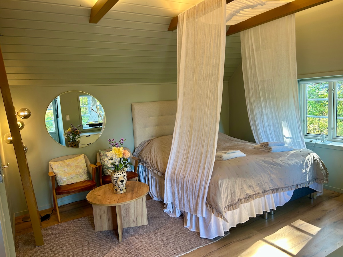 Por sí solo, en el borde de nuestra propiedad se encuentra nuestra pequeña casa de campo en un claro de bosque. Es un lugar tranquilo y silencioso. Solo la naturaleza y a tiro de piedra, hay un cálido lago para nadar. Toda la zona está atravesada por hermosos senderos para caminar y está a menos de un km de la bahía. Herrbret, que llamamos la cabaña, tiene una terraza encantadora en una posición soleada en la parte delantera. Todo es fresco y de nueva construcción en el estilo antiguo, pero con estándares y equipos modernos. La cabaña está pensada como un bonito oasis relajante para dos personas en las inmediaciones de la naturaleza