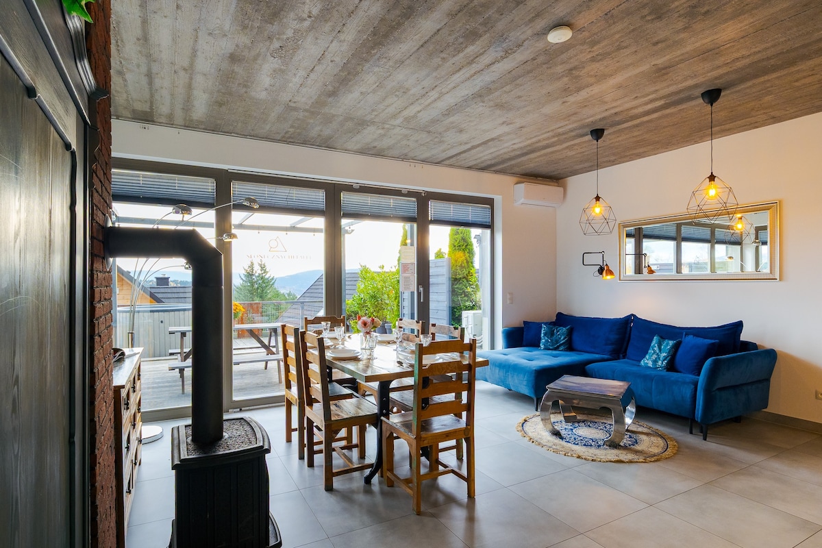 Słoneczny Chełm es un lugar único en un paisaje de fábula, casi en las nubes, con una gran vista del panorama de los montes Tatras. Apartamento independiente de alto nivel, cuyo acabado y utilidad satisfarán a los huéspedes más exigentes. A solo 30 km de Cracovia. Totalmente equipado con una gran terraza y jardín. El apartamento tiene una sauna privada. En el jardín hay un parque infantil y una zona de barbacoa. También hay aparcamiento privado para los huéspedes. Esto es solo un sustituto de lo que hemos preparado.