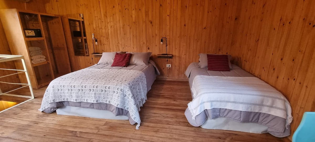 Rústica y sencilla cabaña de madera frente al lago Urugua-í, en un paraje rural a 30 km de las Cataratas del Iguazú. Posee lo indispensable para los aventureros que recorren y disfrutan de la selva paranaense. Cocina con equipamiento básico: fogón, heladera con freezer y utensilios. Aire acondicionado, un wifi bastante malo, agua caliente, kayak para pasear en el lago, y las más bellas puestas de sol en la puerta de tu alojamiento.