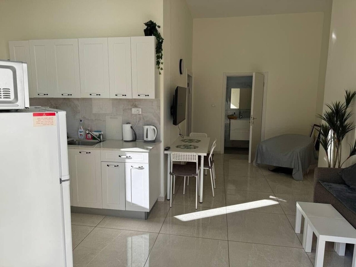 En este apartamento puedes disfrutar de un ambiente tranquilo y pintoresco, hermosas vistas al valle radiante, amplio patio con olivos y árboles frutales. A poca distancia en auto de la playa (2 km) Una selección de cafés y restaurantes, Todo en un ambiente mágico de Galilea occidental El departamento es un estudio con ducha e inodoro, total privacidad. Incluye cama, armario, TV, WiFi, cocina americana donde encontrarás nevera, hervidor eléctrico, utensilios para servir, (está prohibido cocinar en el apartamento). Para el inglés, utiliza la aplicación de traducción * *