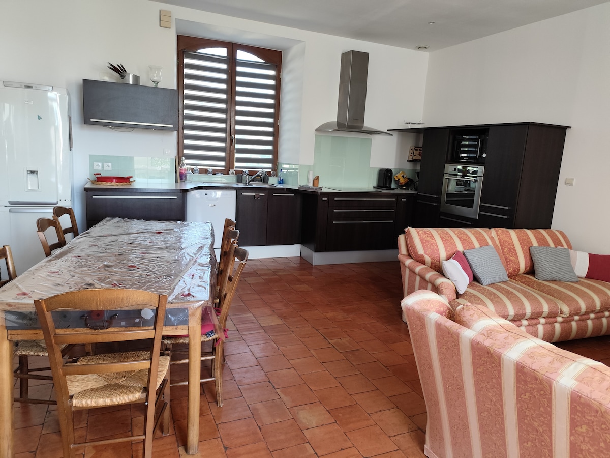 Centro de pueblo clasificado como edificio de Francia. Dormirá en una antigua prensa del siglo XVI. En la planta baja con acceso privado, una sala de estar con sofá cama, una cocina independiente. En el 1.º en altillo, dormitorio, cuarto de baño con ducha y aseo. Se proporcionan sábanas y toallas. Aparcamiento frente a la casa. Ariane le da la bienvenida con reserva previa, en su espacio de bienestar profesional privado dedicado a los masajes corporales y faciales. Tienda de comestibles, despacho de pan, bistró con tablas de aperitivos, platos del día y brunch los domingos.