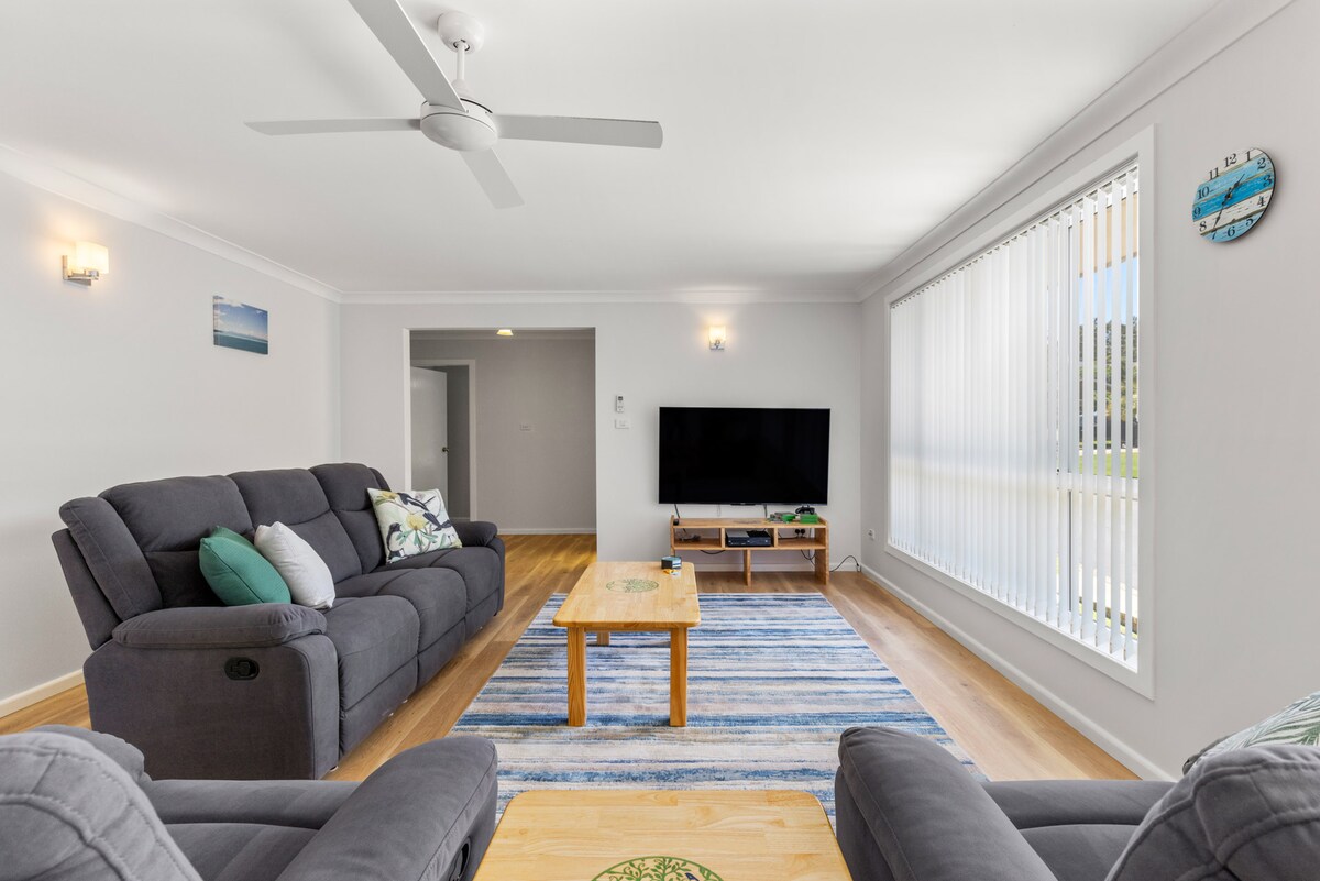 Relájate y desconecta en este alojamiento tranquilo y lujoso. Disfruta sentado en la terraza y observando las aves autóctonas y el arbusto, ¡todo a 8 minutos a pie de la hermosa playa de Valla! La hermosa terraza y el espacio al aire libre son un refugio para hacer barbacoas, entretenerse y relajarse después de un día de pesca, surf y exploración. Visita una de nuestras grandes cafeterías o tabernas. Nuestras aves y vida silvestre del patio trasero incluyen: cucaburras, loritos, loros rey, cacatúas blancas y negras, martines pescadores y bocas de rana. Los canguros son visitantes frecuentes.