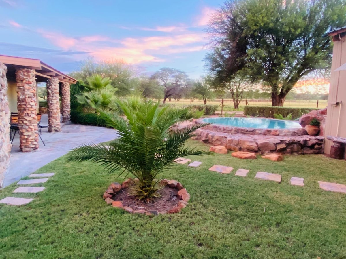 Namibia's first off the grid Tiny House and Gypsy Wagon- ideal to experience this new life stile in mid of African bush and wildlife. Enjoy the sounds of nature in this unique place. This is a great and peaceful home to stay if you arrive to or depart from Namibia. Close to Airport and city, game viewing, kayaking and hiking are to explore. Need some time-out from the city? Let Bellacus welcome you to a few relaxing, stress-free days on the farm in our high quality self catering BellaTiny.