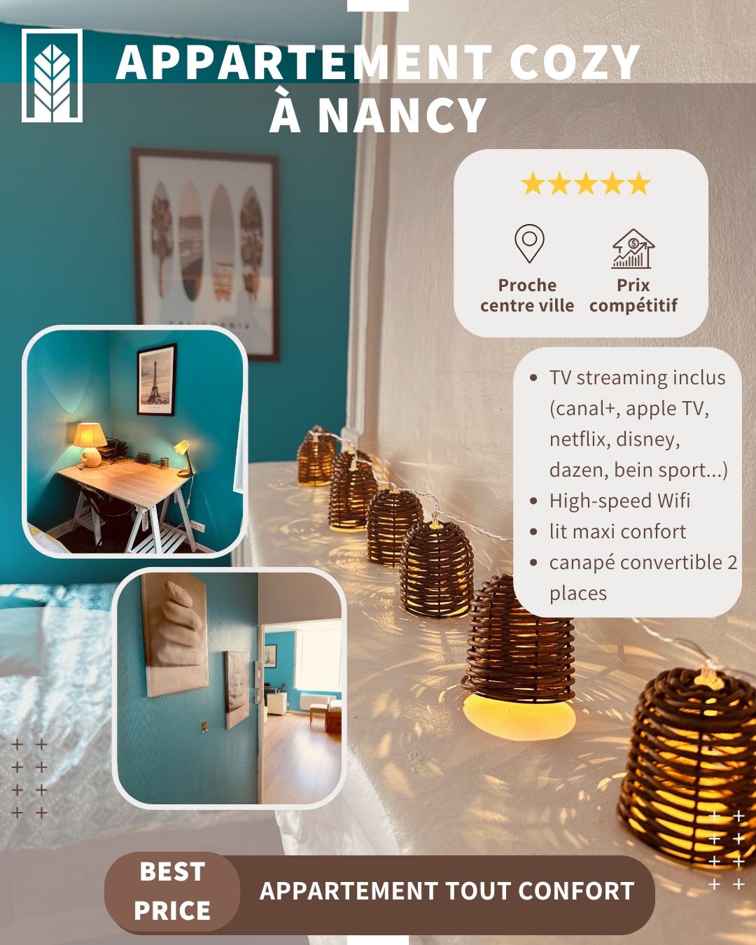 Con una ubicación ideal en una zona tranquila, a solo 10 minutos andando del tranvía y de las tiendas. La famosa plaza Stanislas se encuentra a 1,8 km, y el acceso a la autopista está a 1 km, lo que facilita los desplazamientos. El aparcamiento es sencillo y gratuito, con muchas plazas disponibles en los alrededores. El apartamento está totalmente equipado para una cómoda estancia. Perfecto para una estancia en pareja, ya sea para una visita a Nancy o un viaje de negocios.