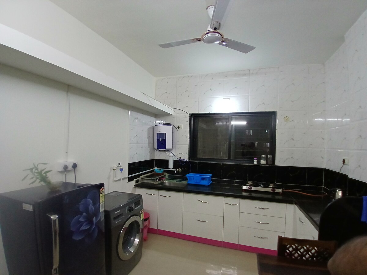 ¡Quédate acogedor con tus seres queridos! Perfecto para viajeros solitarios, parejas casadas, en familias, ofrece un espacio para reducir la velocidad. Lo sentimos, no se permiten solteros. La sala de estar y las habitaciones están equipadas con aire acondicionado para garantizar una estancia cómoda. Este lugar está muy cerca de la autopista de Bombay y del centro comercial c. Swiggy n Zomato también disponible. Pero después de las 10:00 p. m., debes recoger tu paquete en la puerta principal. despierta con una vista impresionante del amanecer. Me encantaría personalmente que tu estancia fuera lo más placentera posible.