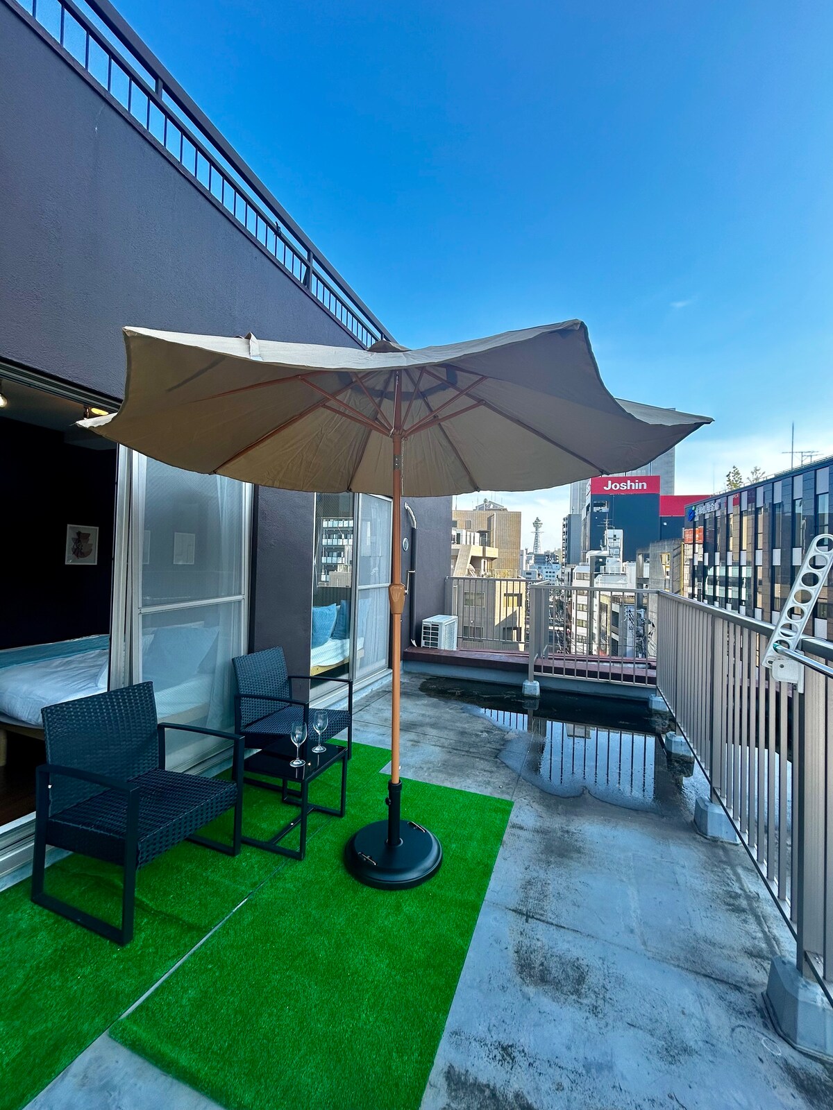 Cita/2BR/Limpio y hermoso/2 estaciones hasta Shinsaibashi y Namba, Osaka/Vista desde el piso superior/5 minutos a pie de la estación/7 personas/Acceso directo al aeropuerto de Kansai