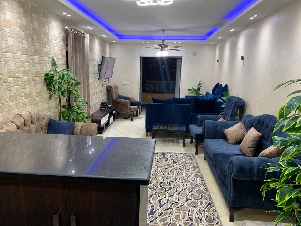 La ubicación muy buena , cerca de todo si estás c auto Es un apartamento con patio privado, está a 10 minutos del aeropuerto de El Cairo, es un lugar hermoso, hay 2 bicicletas, es un apartamento de 2 dormitorios con 2 camas. Hay una criada si lo deseas, hay muchos jardines y calles tranquilas, también hay un mercado, una panadería y un restaurante con servicio a domicilio. Si la familia es mayor de 4 personas, podemos añadir más camas para que puedan alojarse 6 personas. Se admiten mascotas.