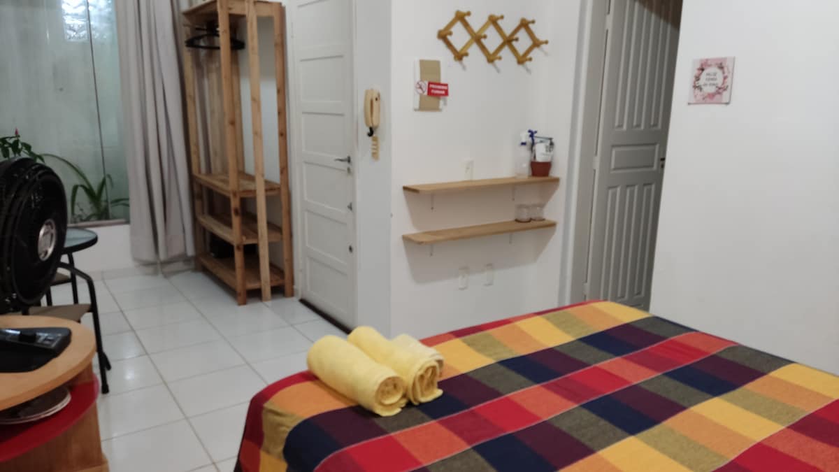 Suite sencilla y muy limpia. Al elegir nuestro alojamiento, tendrás una habitación con baño y cocina privados, sin zonas comunes. Estamos convenientemente ubicados a solo 700 metros de la playa de Ponta Negra y a pocos pasos de Morro do Careca. Ofrecemos una cama tamaño queen, una cocina bien equipada, aire acondicionado, ventilador, TV inteligente y ducha eléctrica para su comodidad. Además, proporcionamos ropa de cama y toallas. UFRN - 6.9 km Centro de convenciones - 1,9 km