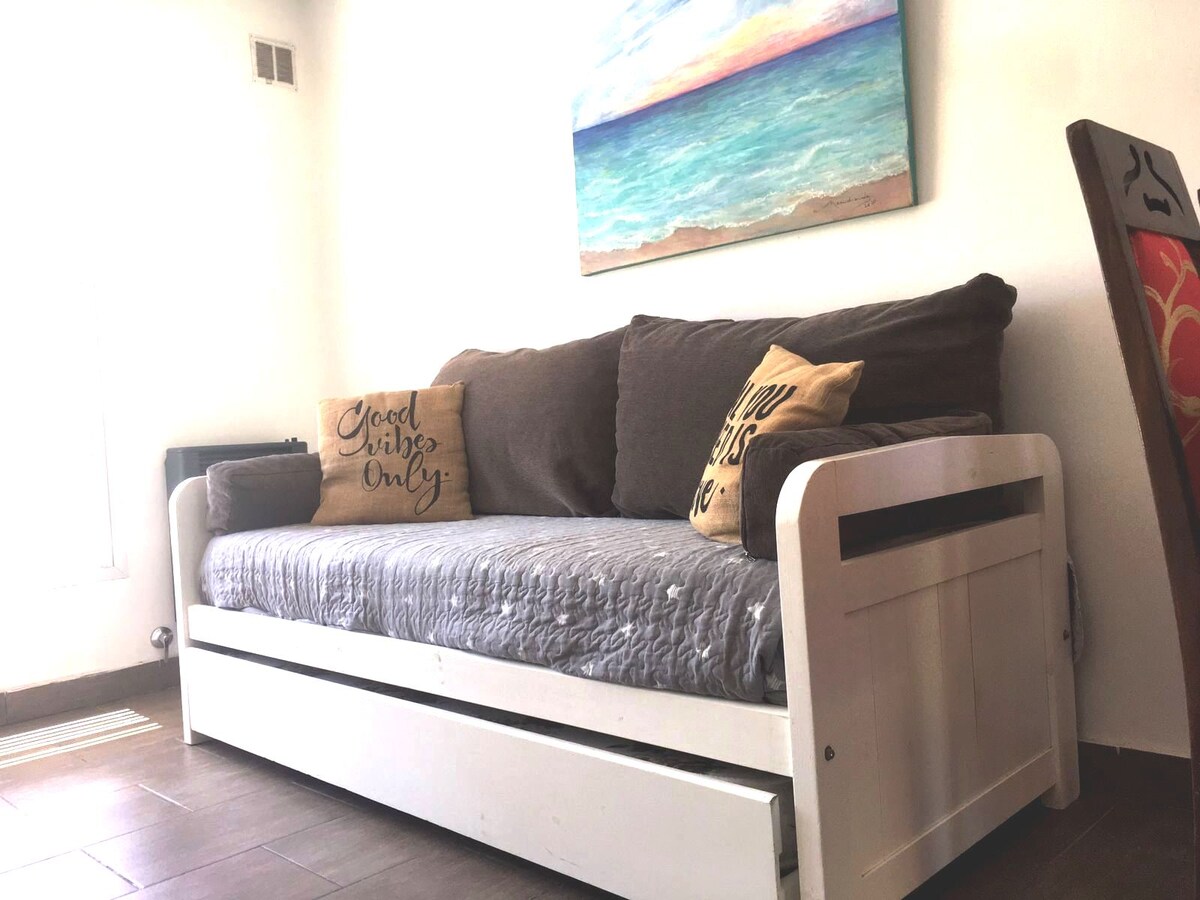 Económico Monoambiente para 2 personas en zona playa de Necochea. Contamos con amplias referencias de nuestro servicio y un trato amigable a todos nuestros huéspedes. Wifi de 300 megas, Flow ( cable y películas gratis), tv 43 pulgadas. Para está temporada renovamos ropa de cama, toallas, ventiladores, vajilla y mucho más. Ubicado detrás de una casa, lo cual brinda tranquilidad y seguridad a todos. ideal para aquellos que quieren un lugar cómodo, económico y agradable.