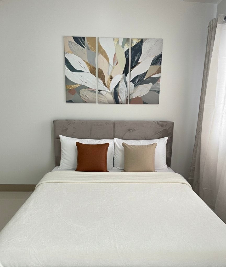 Este lugar minimalista y relajante se encuentra en el centro de la ciudad de Iloilo y cerca de centros comerciales y destinos imprescindibles (Casa Emperador, iglesia y plaza de Molo). Esta habitación tiene una cama tamaño queen y ofrece servicios similares a los de un hotel, como TV Sony de 55 pulgadas, wifi gratuito con velocidad de internet rápida, nevera, aire acondicionado, hervidor eléctrico, bidé con función de lavado femenino y trasero, calentador de agua (ducha caliente), arrocera, estufa de inducción y utensilios de cocina. También hay piscina (2 personas) y gimnasio disponibles.