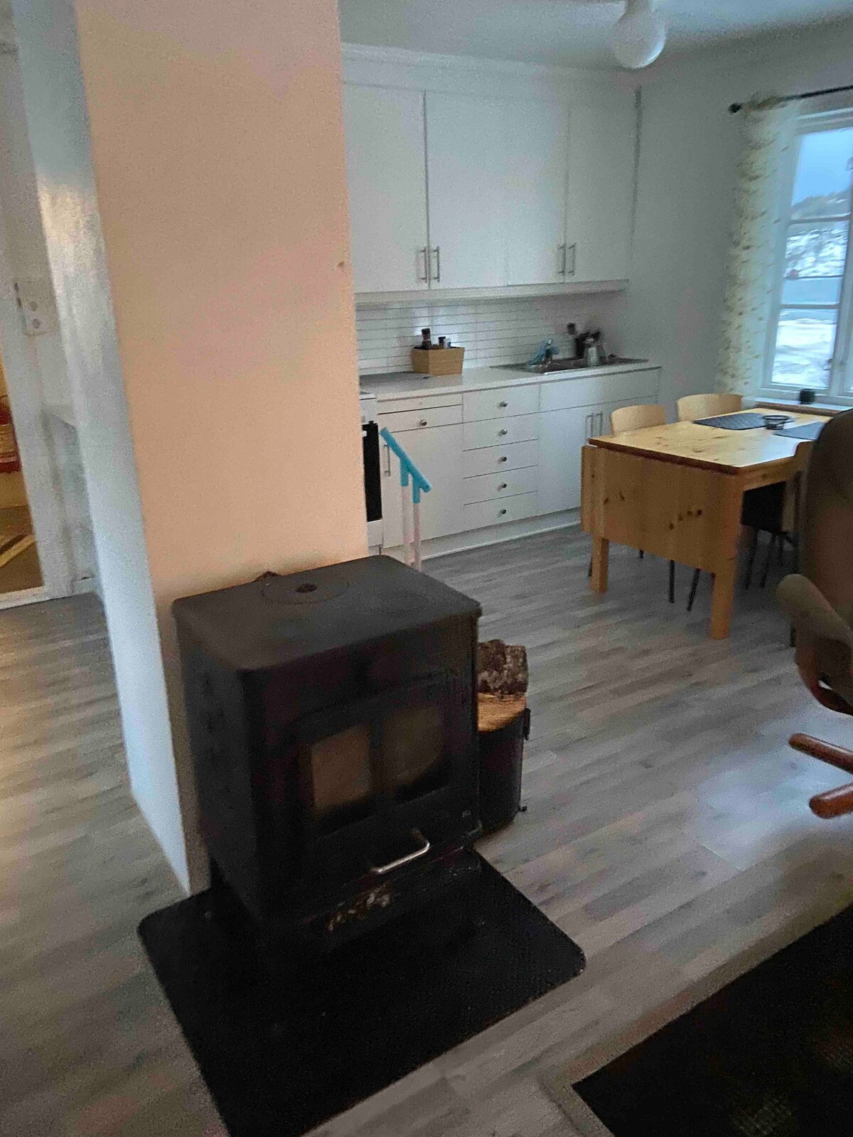 ¡Bienvenido a Bodilbu! Bodilbu era básicamente el puesto de carpintería de mi abuelo cuando era pequeña. Ahora hoy es una cabaña única y muy bonita con espacio para 2-3 personas. Opciones de cama adicional si lo deseas. Cocina pequeña, sala de estar con comedor y sofá, y rincón para dormir con cama familiar. Baño con ducha, lavabo e inodoro, cables de calefacción en el suelo. Wifi, toallas y ropa de cama incluidos. Uso gratuito del cenador que está cerca, hay una parrilla de gas y mucho espacio para preparar comidas.