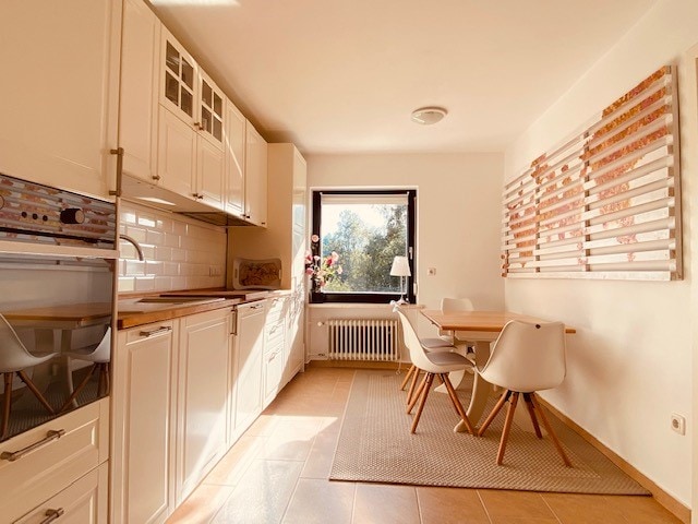 El amplio apartamento tiene unos 70 m² de superficie habitable y se encuentra en el primer piso de una casa antigua reformada con esmero cerca del famoso Dreiflußeck de Passau, directamente junto al río Eno. La ubicación es muy tranquila, solo la sala de estar tiene una ventana que da a un patio de la escuela en el que a veces hacen ruido los alumnos. El apartamento está equipado con todo lo necesario, es decir, suficiente ropa de cama, vajilla, utensilios de cocina, etc. Es ideal para 2 personas, pero hay un sofá cama adicional disponible.
